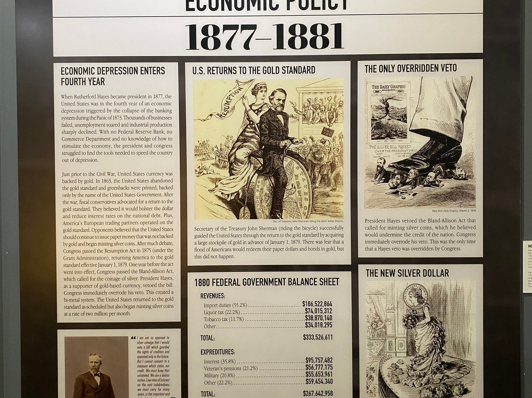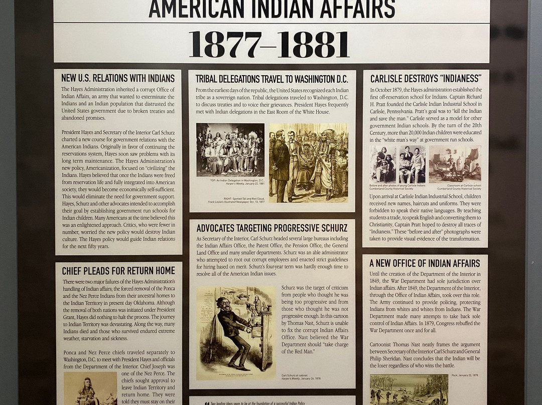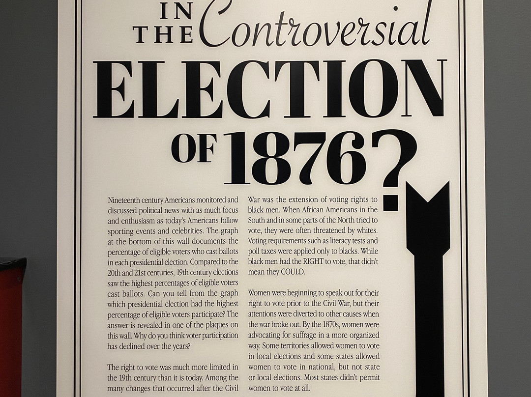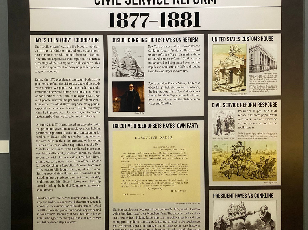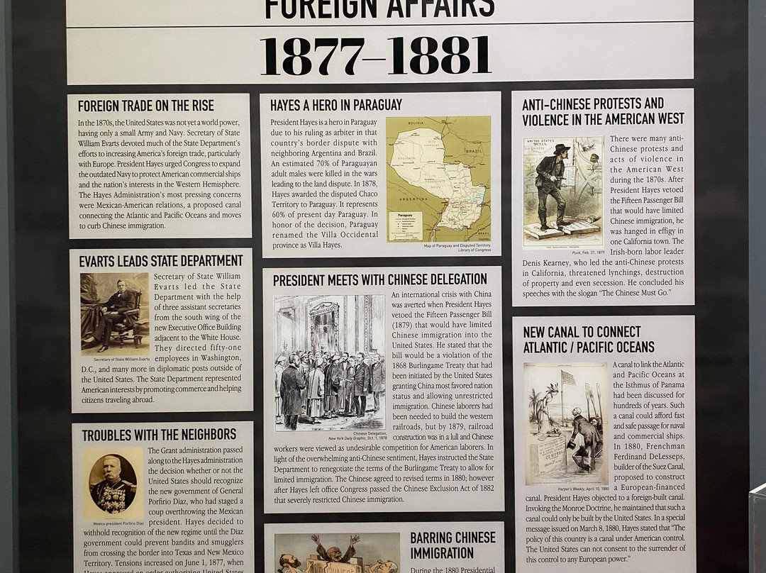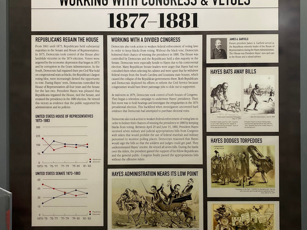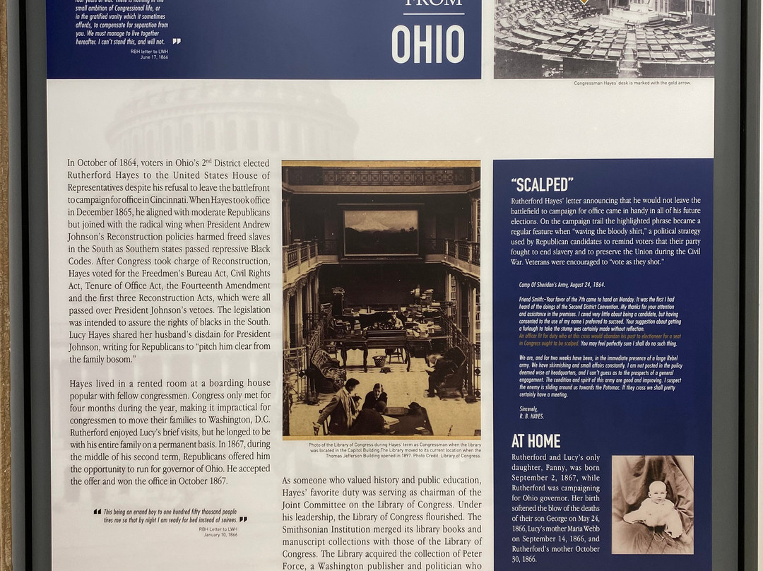 点评:Great trip. We arrived at approximately 12 pm and made our way towards the entrance of the museum. After paying the admission fee, we received a quick overview of the site and began to explore the museum. The museum consisted of several levels, including the ground floor and basement. There were informational plaques scattered throughout the museum, that went into detail about President Hayes life and his contributions to society as President. There were also multiple artifacts out for display as well, that related in some way, shape or form to President Hayes. The basement level focused on his early life, and the ground floor of the museum focused on his life as President. There was also a small section located towards the back of the museum that focused on his family life. The informational plaques were very text heavy and took a lot of time to get through. The site also hosted guided tours of President Hayes house, which was directly next to the museum. The tour of the house lasted roughly an hour and the tour guide took us from room to room, highlighting important features and telling us stories of the President and his family.
