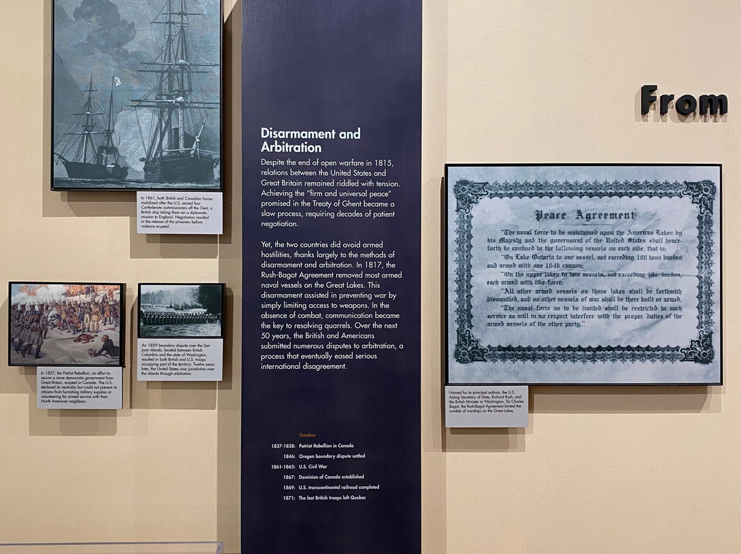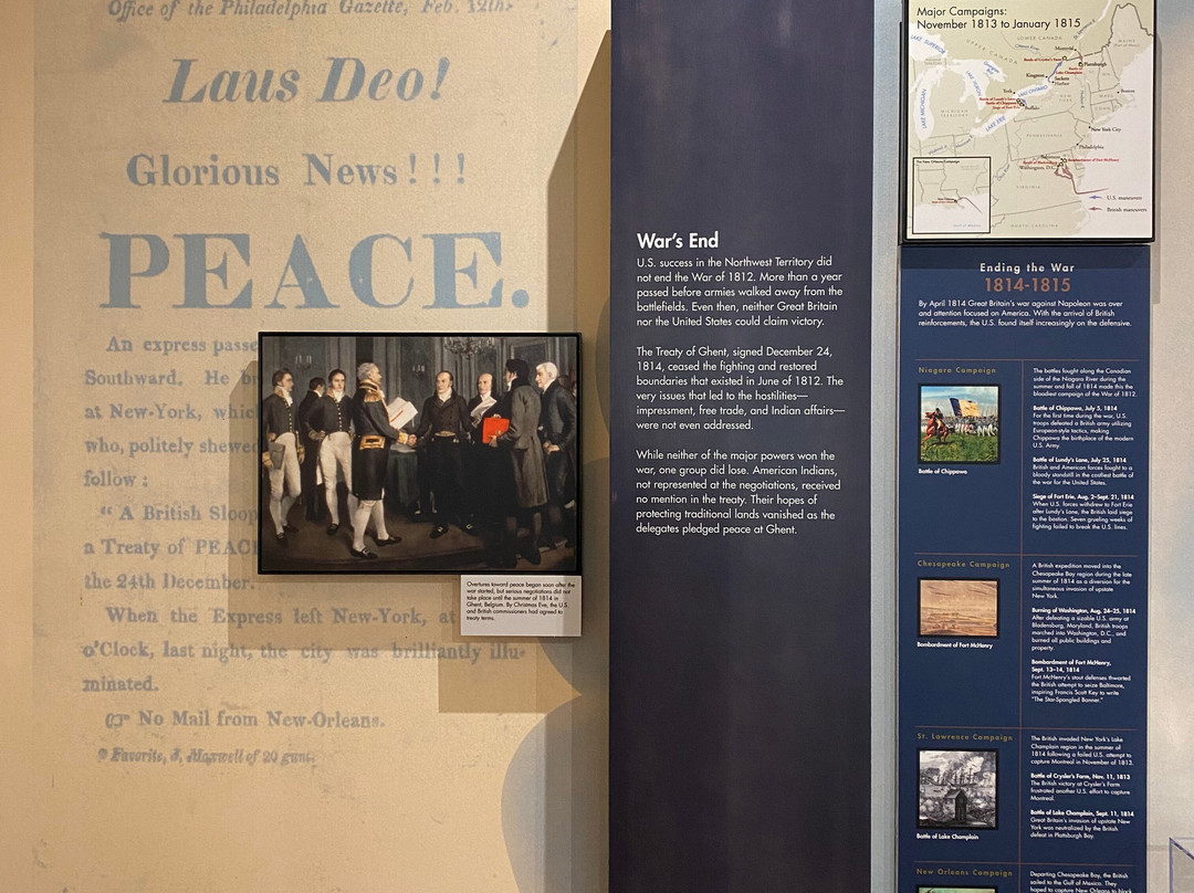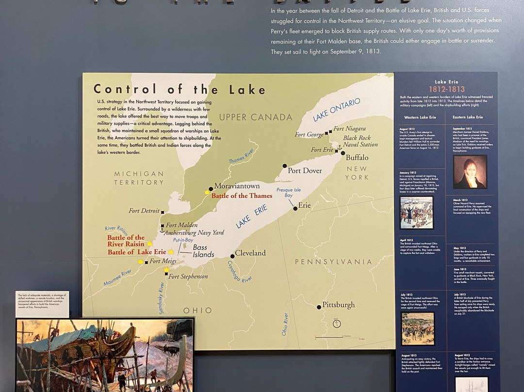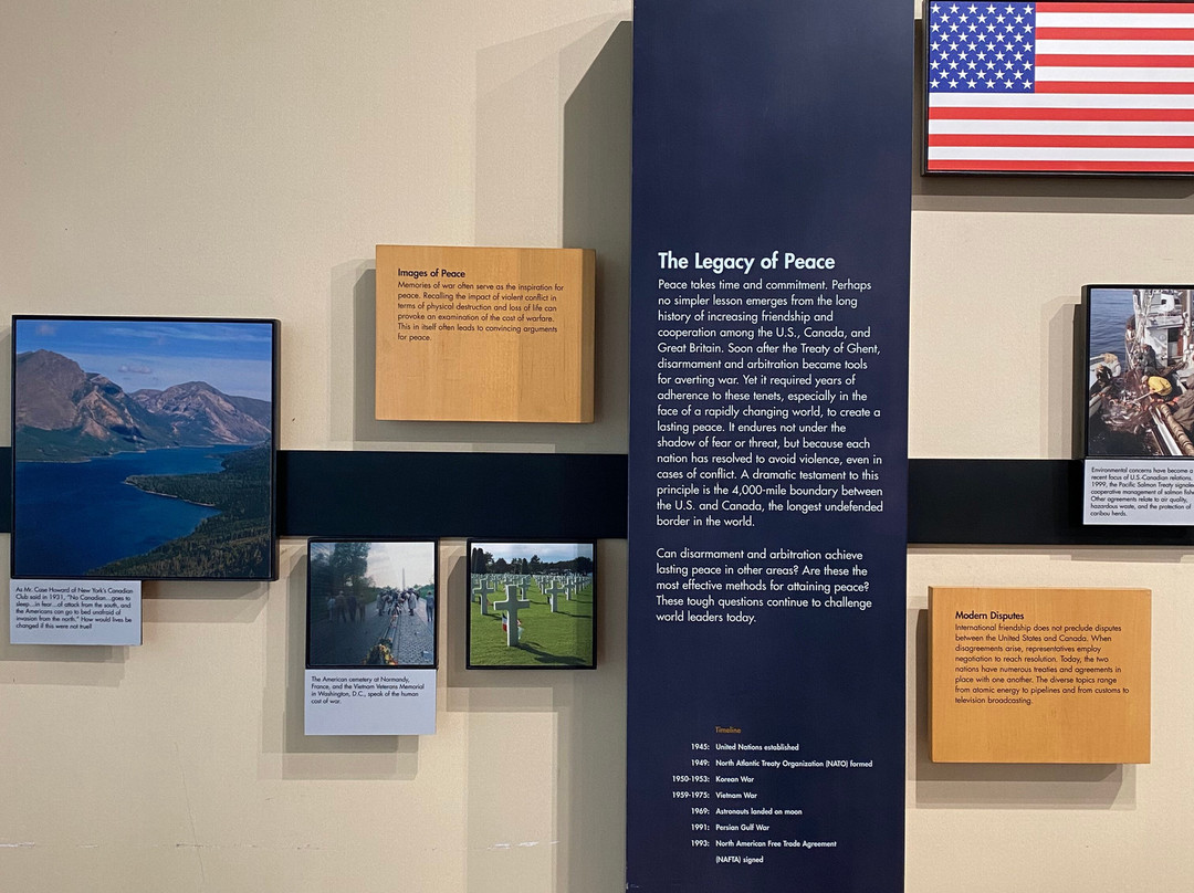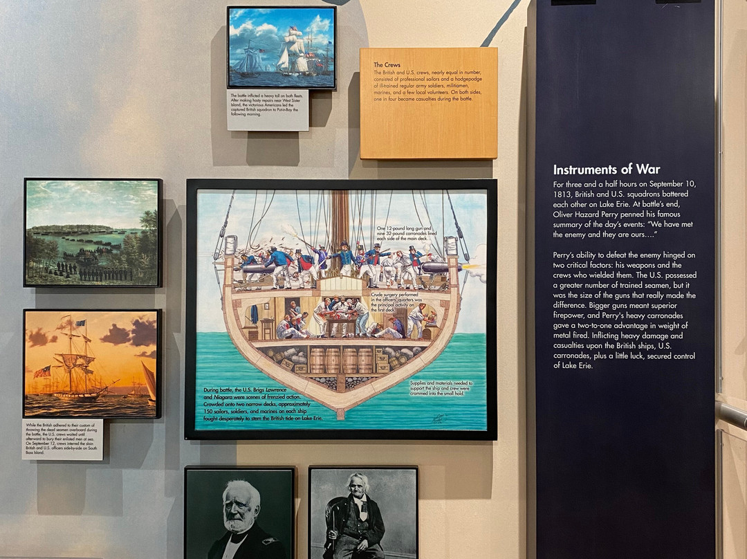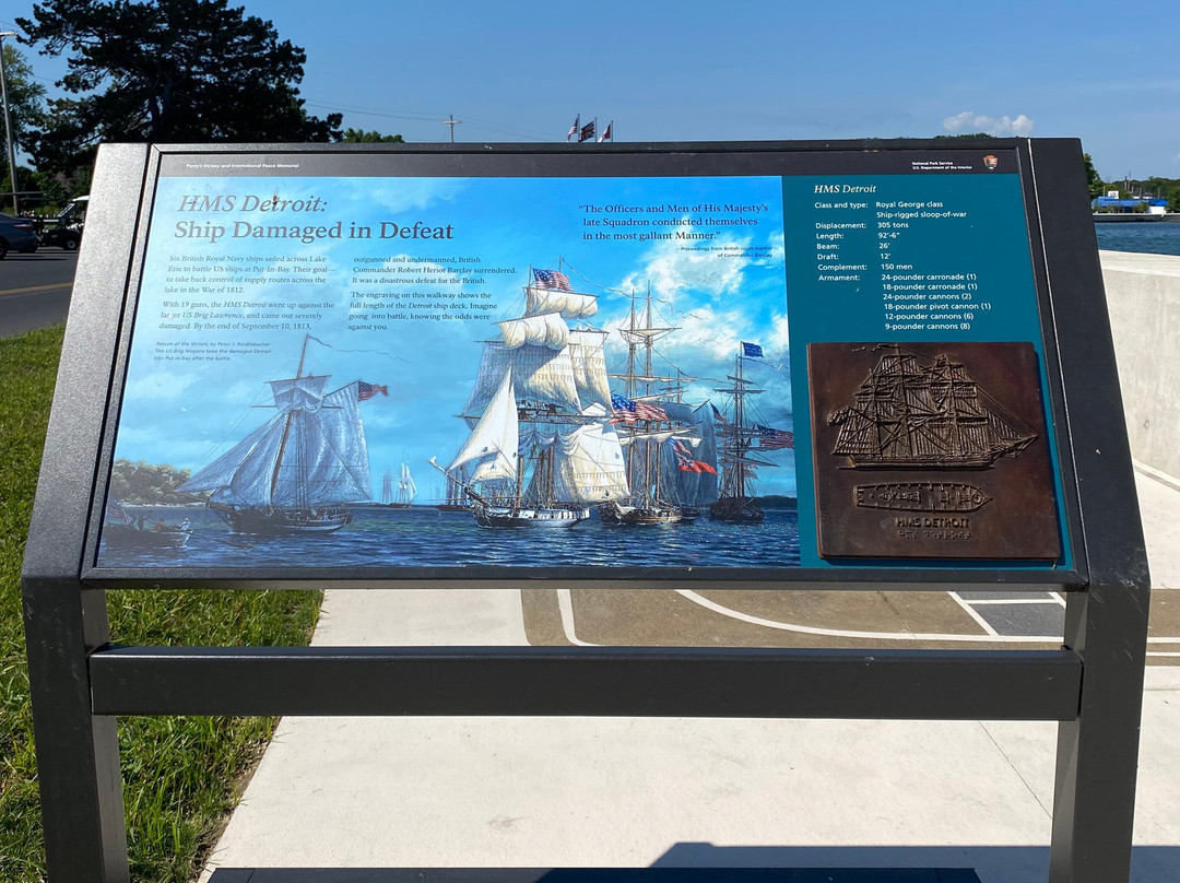 点评:Great trip. We arrived at approximately 10 am and made our way towards the entrance of the visitor center. We were able to purchase timed tickets for 10:45 am to view the top of the International Peace Memorial. After buying our tickets, we decided to explore the indoor exhibits. There were multiple informational plaques and artifacts out for display, that went over the War of 1812 and the events that transpired that day. There was also a short 15 minute movie playing throughout the day that went into detail about Commodore Oliver Hazard Perry’s contributions to the War of 1812 and how the war originated in the first place. There was a small gift shop and restrooms available inside the visitor center as well. After viewing the indoor exhibits, we made our way outside to the International Peace Memorial. The attendant checked our tickets and we waited in a short line to take the next available elevator to the top of the monument. Once at the top, we were able to enjoy picturesque views of Lake Erie and even Canada. There were several more informational plaques at the top of the monument that talked about the War of 1812 and the various landmarks visible at the top of the monument. There were multiple park rangers at both the visitor center and International Peace Memorial that were willing to answer any questions that we may have had.