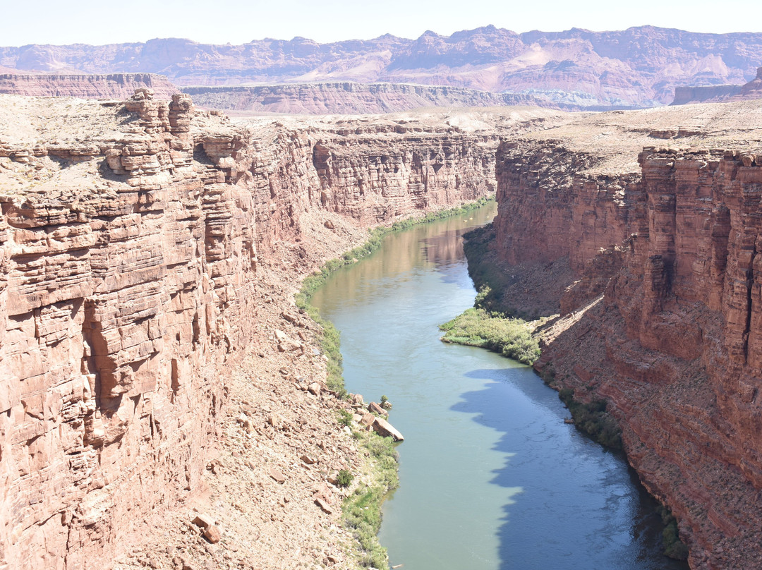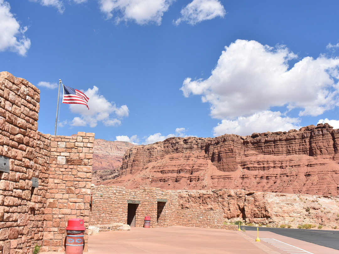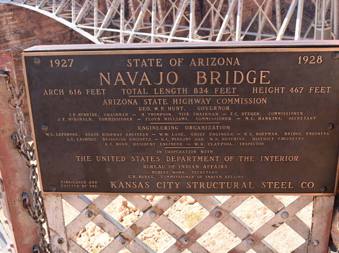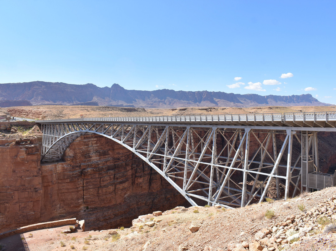 点评:After a great experience in Monument Valley, we spent the night in Page Arizona before heading to the north rim of the Grand Canyon. On the way we made a detour to Marble Canyon and the Historic Navajo Bridge. Although Marble Canyon is only about 15-miles as the crow flies from Page it is a little over 40-by car and took us just about an hour to make the drive. The scenery along the way was magnificent and made for a wonderful drive. Arriving we cross the “New” Navajo Bridge which opened to vehicle traffic in 1995. The is a small visitors center here with restrooms and exhibits. The highlight of our visit was walking across the original 834 foot long Navajo Bridge. The walk across the bridge afforded up with a great view of the canyon that has been carved by the Colorado River some 470-feet below. There were several rafters floating down the river as we made our way across, and we even got a moon from a couple of the folks on the raft. Another visitor said this was an “Unofficial” Tradition. We arrived shortly after 8 a.m. and the color of the canyon and surrounding area was amazing. There is ample parking for all size vehicles at the visitor’s center and admission is free. Needless to say, the Canyon and Bridge are somewhat out of the way, and it takes some effort to get here. But the drive in is on a well-maintained paved road and the landscape is amazing. We ended up spending about an hour there, which was enough time to take in the exhibits and for a leisurely walk across the bridge. I would highly recommend at visit to Marble Canyon and the Navajo Bridge.