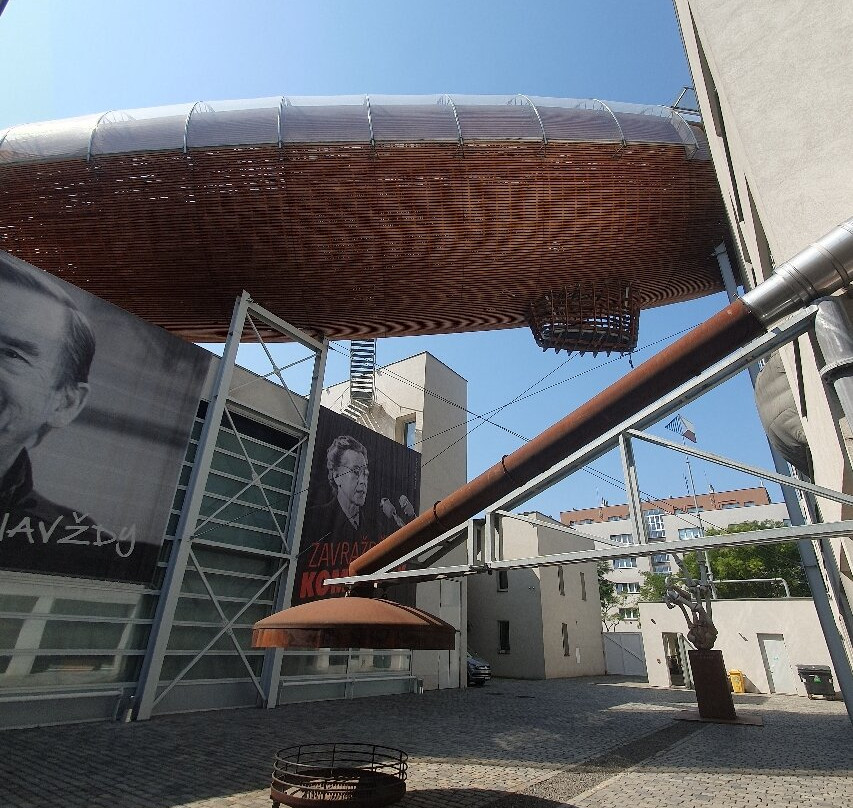 Il cortile esterno ospita alcune sculture mentre dalla terrazza adiacente al bar e possibile accedere al dirigibile.