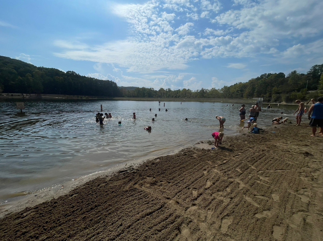 湖离这里只有一英里远,沿着一条弯曲的道路,很棒 - 只要不是中午(没有阴凉处)。但下午 3 点就出现了阴凉处。卡罗尔和她亲爱的母亲乔迪在租赁特许经营店工作,免费借给我们救生衣!非常感谢!!他们出租各种独木舟、桨板、皮划艇等。水很温暖,底部是沙质的。沙子/细泥土和砾石使湖边挖掘和玩耍变得愉快。带上你的沙滩椅。