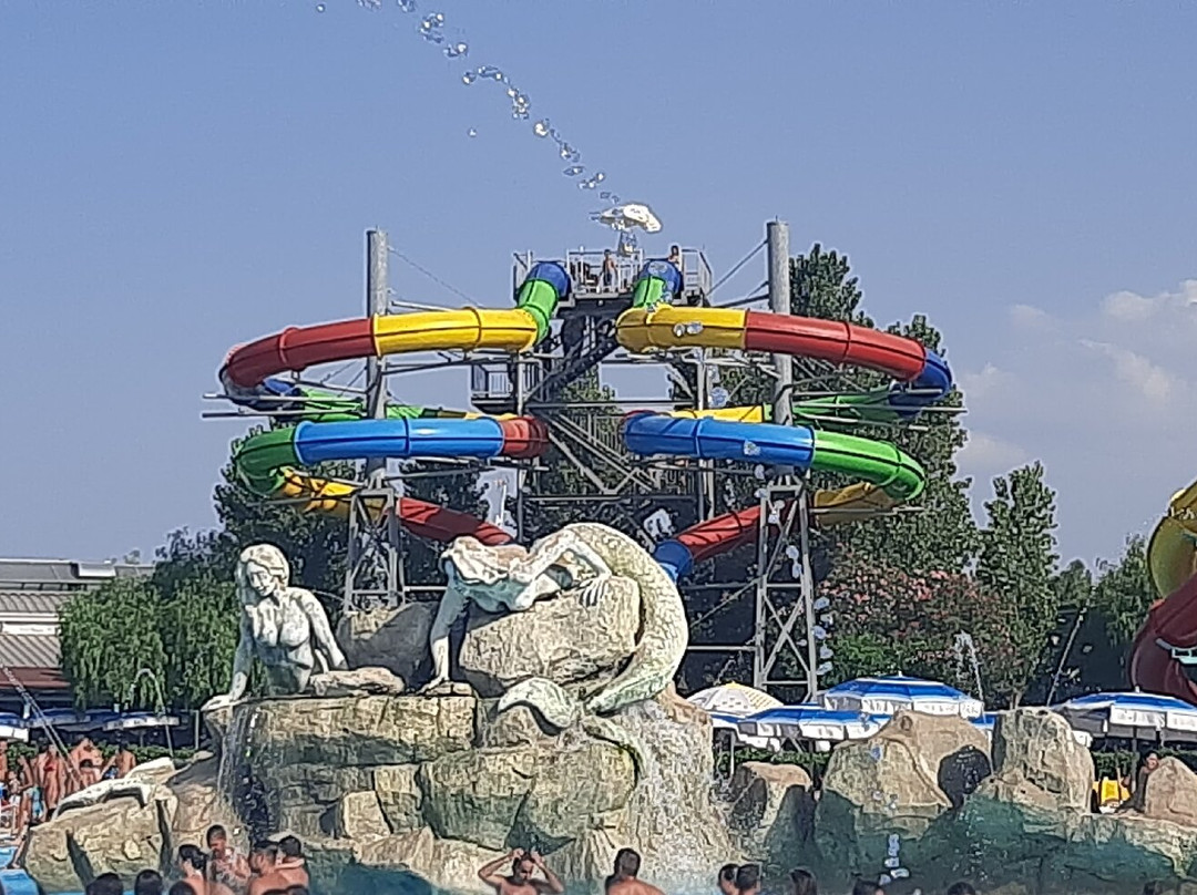 点评:Sono stata ieri un parco fantastico pieno di attrazioni molto belle per gli adolescenti. C'era un po' di gente ma le file agli scivoli e nei chioschetti del food erano gestiti abbastanza velocemente. Il mio ma.... del titolo è riferito a due inconvenienti. Il primo è che pagando il gazebo 10 € e le sdraio facendo vedere gli scontrini ho trovato sempre altra gente seduta e di conseguenza ho avuto a che fare con la loro maleducazione quindi ci vorrebbero più controlli. L'altra cosa è nello scivolo con lo stuoino il bagnino ha chiesto a mio figlio se aveva avuto un'operazione è lha mandato in infermeria da solo (mio figlio è minore) facendolo rifare la fila e grazie ad un altro bagnino e al mio che siamo intervenuti ha fatto il giro senza rifare la fila. Alcuni ragazzi bagnini sono davvero molto antipatici, i più grandi i migliori e pazienti. Per il resto non ho nulla da dire tutto bello ci ritorneremo sicuramente.