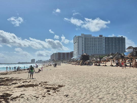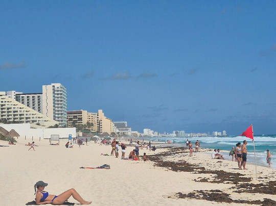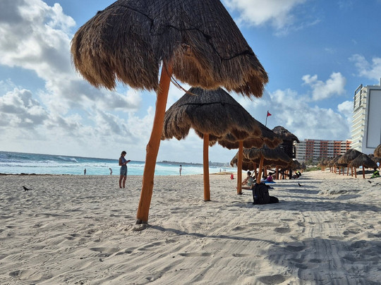翻译:我们之前听说Playa Delfine海滩很棒,所以很兴奋地去了那里。我们叫了辆Uber,到了之后……又一次失望了。这似乎成了我们墨西哥之旅的常态。