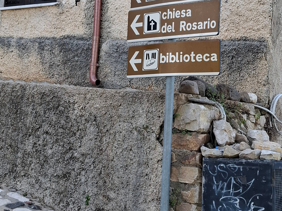 沿途我们还看到了两座古老的教堂,罗萨里奥教堂(Chiesa del Rosario)和索科索教堂(Chiesa B.V. Soccorso),我们参观时两座教堂都关闭了。尽管关闭,它们仍然为这座古老的村庄增添了魅力。我们还路过了村里的图书馆。