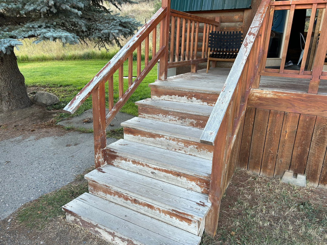 点评:Do these pictures look like a 400.00 per night cabin? We had to call because the toilet wouldn’t flush, sink in bathroom wouldn’t drain and light above bathroom sink did not have chain. When we went to talk to manager she said well the place is old and rustic and I said rustic is one thing but but not keeping up the place is another. As the pictures show porch was disgraceful, cabinets and doors just as bad and one air conditioner (very old and dirty) that was only felt in living area.After going to see her twice she gave us a 75.00 discount per night, still very overpriced for what you were getting.Pool floor needs work and changing area was disgusting ! On the good side staff was very friendly but the women in the bar had chewing tobacco in lower lip.View was fantastic if that is all you want!