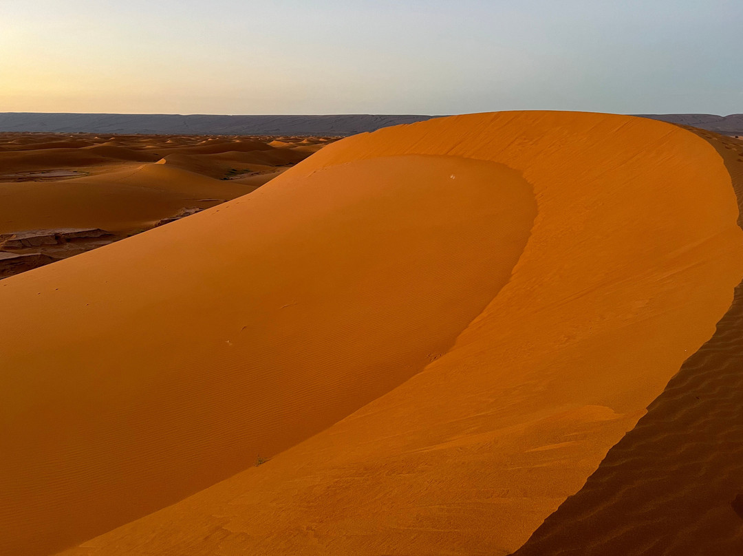 翻译:除了比尔格切比大得多之外,它最重要的是游客较少。从马拉喀什到扎戈拉的路上的景色确实令人叹为观止,无论是从阿格兹到扎戈拉的外行途中,您都可以欣赏到棕榈树林的无限种植——没有我上次访问时那么茂盛——棕榈树林在公路两侧绵延约 200 公里,回程途中,经过伊里基湖(当时巴黎-达喀尔拉力赛穿过该湖)。但除了沿途的壮丽景色外,切卡加或奇卡加沙漠确实雄伟,几乎完全被群山包围。通过入住至少 2 晚,您可以在沙丘中完全与世隔绝和震耳欲聋的寂静中体验真正奇妙的体验(游客不多)。几乎所有旅游团都只提供 1 晚住宿(下午晚些时候抵达,清晨离开),但我强烈建议您至少住 2 晚,这样您就可以花一整天的时间体验在撒哈拉沙丘中完全独自一人意味着什么永远不会厌倦欣赏这片无边无际的沙子,它的色彩、形状和阴影让你着迷并铭刻在你的心中(这就是我第二次来这里的原因)。用文字描述它有点像描述香水,这很困难,但也许照片可以给你一个想法,我会附上照片,如果可能的话还附上视频。我强烈建议仔细选择位于沙丘之间而不是沙漠外部或边缘的田地,也许可以通过输入田地坐标或谷歌地图来使用谷歌地球。