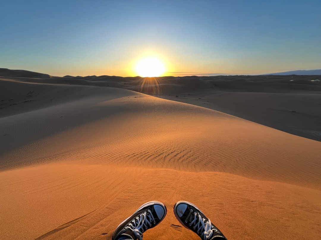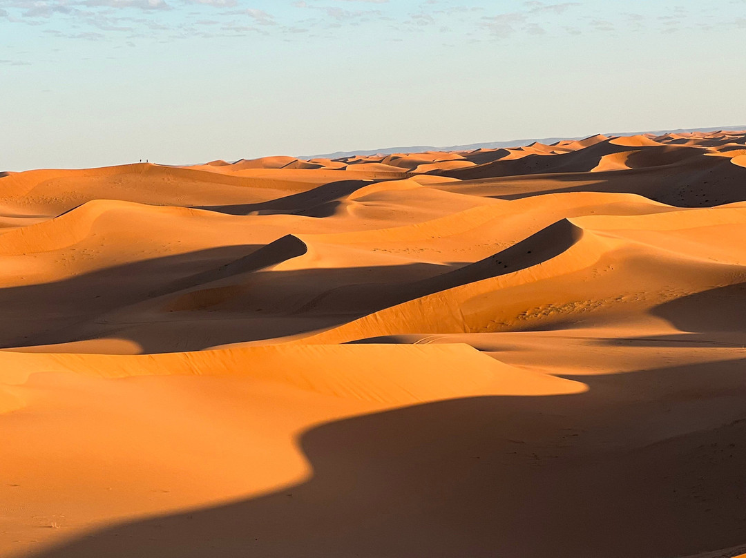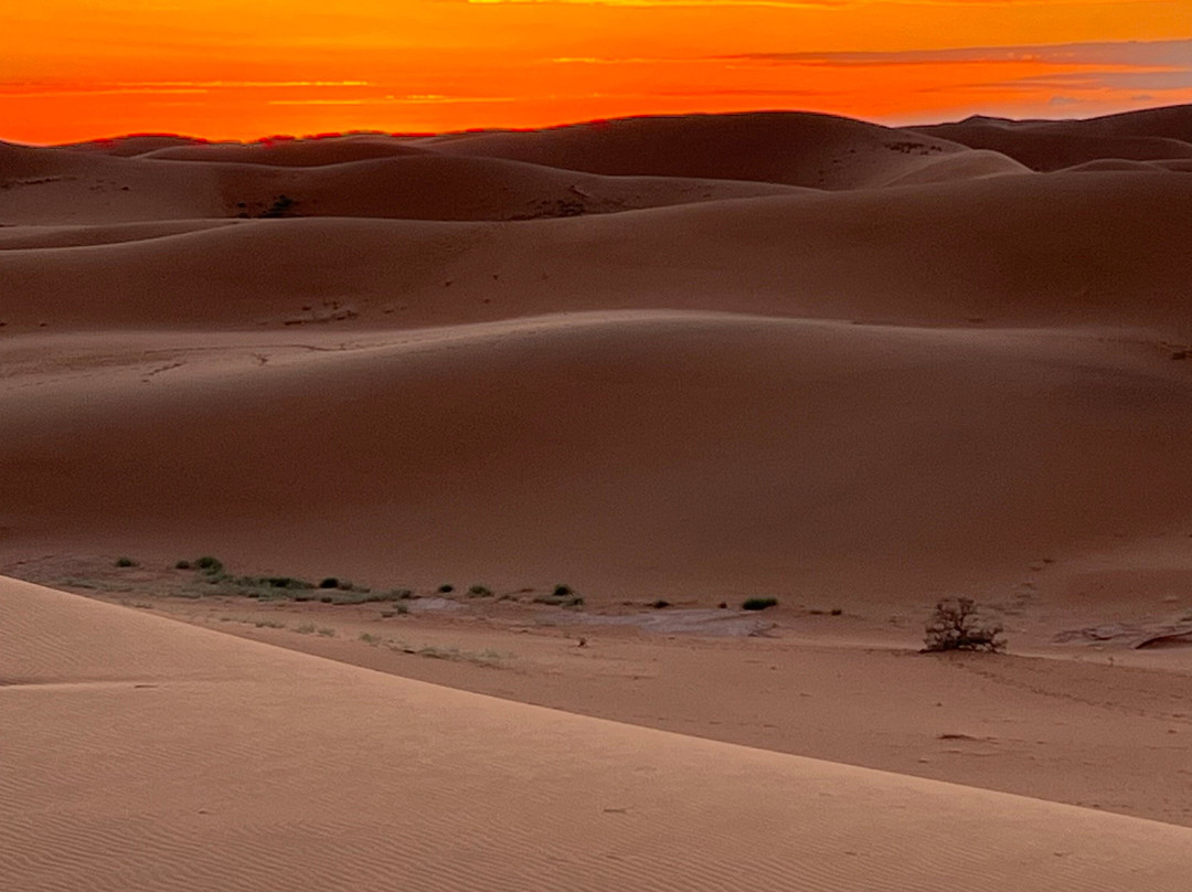 点评:Oltre ad essere molto più vasto rispetto a quello di Erg Chebbi è soprattutto meno turistico. I panorami della strada per arrivarci da Marrakech sono veramente mozzafiato, sia all’andata dove da Agdz a Zagora puoi ammirare l’infinita coltivazione di palmeti - meno rigogliosi della mia precedente visita - che fiancheggiano la strada per circa 200km, che al ritorno, passando per il lago Iriqui (attraversato a suo tempo dal rally PARIS-DAKAR). Ma a parte gli splendidi panorami del percorso il deserto Checaga o Chicaga è veramente maestoso e circondato quasi per intero da montagne. Restando almeno 2 notti si può vivere in piena solitudine  tra dune e silenzio assordante un’esperienza veramente fantastica (essendo poco turistico). Quasi tutti i tour propongono 1 sola notte (arrivando il tardo pomeriggio e ripartendo la mattina presto) ma io CONSIGLIO VIVAMENTE DI RESTARE ALMENO 2 NOTTI così un’intero giorno lo si può passare sperimentando cosa significhi stare totalmente soli tra le dune del Sahara senza mai stancarsi di ammirare questa immensa distesa di sabbia con colori, forme, ed ombre che  ti rapiscono e rimangono impressi nel cuore (è per questo che ci sono venuta per la seconda volta). Descriverlo a parole è un po come descrivere un profumo, è difficile ma forse le foto possono rendere l’idea, allego foto e se possibile video. CONSIGLIO vivamente di scegliere attentamente i campi che siano collocati tra le dune e non fuori o ai margini del deserto sabbioso, magari utilizzando google earth inserendo le coordinate del campo o google maps.