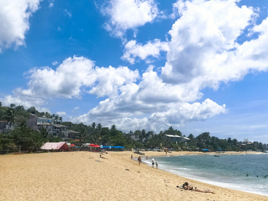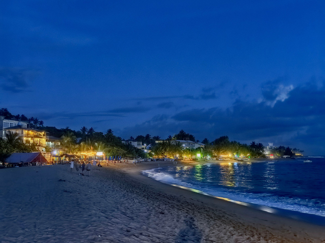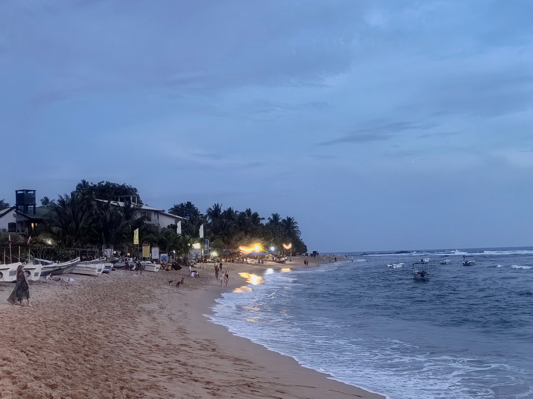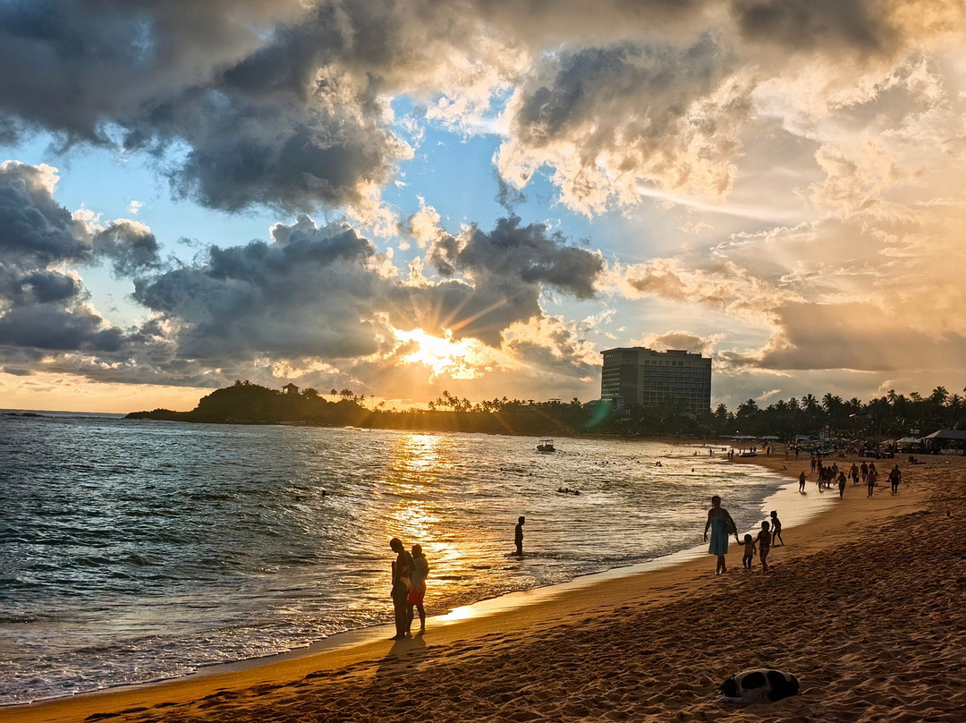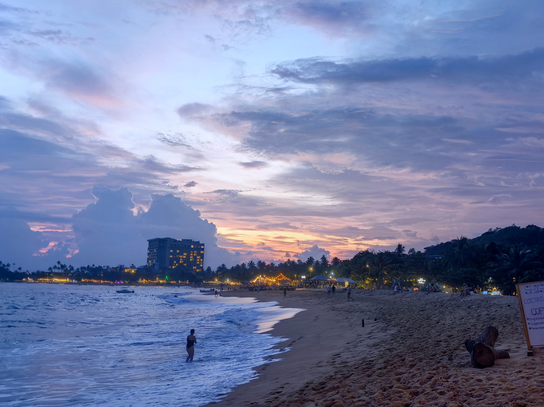翻译:据传说,这个美丽的村庄和海滩的名字来源于一位遭遇海难后定居于此的印度商人。乌纳瓦图纳绵延一公里的海滩呈弧形展开。它最大的优势在于双层礁石吸收了冲击力,使得这里几乎没有强浪。海滩的坡度也十分优美,平缓的坡度使其非常适合带孩子游泳,也适合不会游泳或游泳水平较差的人。这或许就是乌纳瓦图纳不仅深受俄罗斯游客喜爱,也深受当地人欢迎的原因。不过,在我看来,斯里兰卡人会游泳的比例似乎比印度人高得多……然而,水深在10-15米处开始变深。海滩的另一个优点是日光浴躺椅随处可见。它们位于海滩酒店和餐厅附近。只需在酒吧点一杯饮料,就可以随意使用。非常方便又实惠……我们尤其喜欢蓝调小酒馆餐厅。乌纳瓦图纳还没有像其他度假胜地那样商业化,所以几乎没有像船只、香蕉船、滑翔伞之类的额外服务。对我来说,这是个优点。你可以悠闲地游泳……海滩的中心区域更有意思,虽然不知为何大多数度假者都聚集在北部,即使河口就在附近。顺便说一句,那里的气味不太好闻……也许是因为大部分餐厅和几家酒店都在那里。最后,除了主要景点之外,乌纳瓦图纳海滩的日落也美不胜收。即使是最内敛的人也会被它的日落所吸引。值得一看……