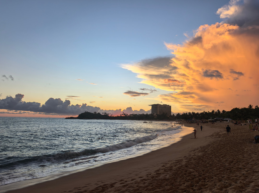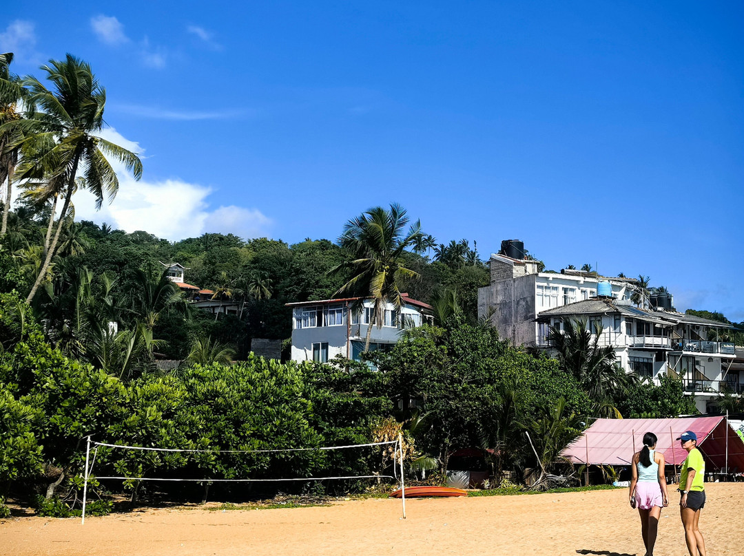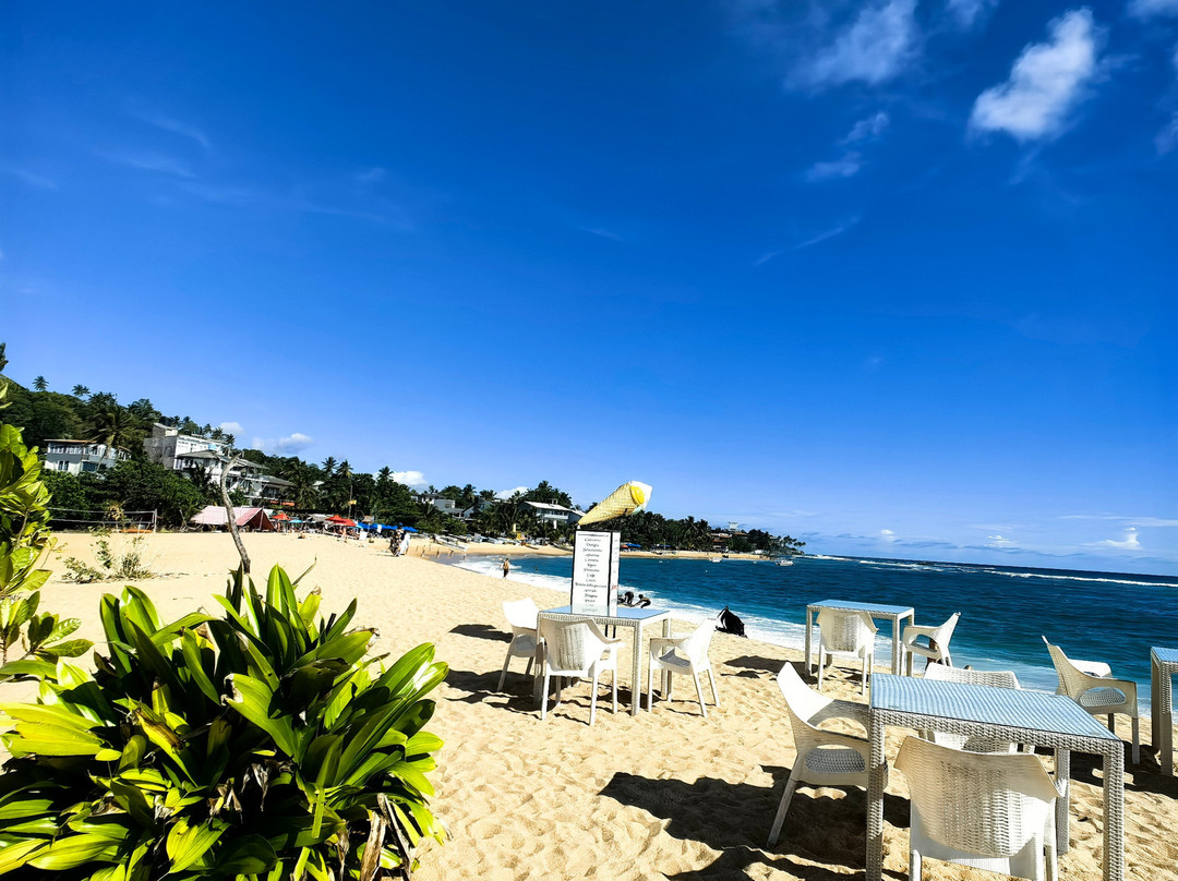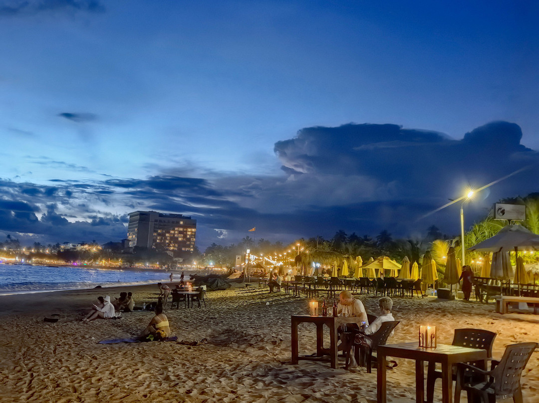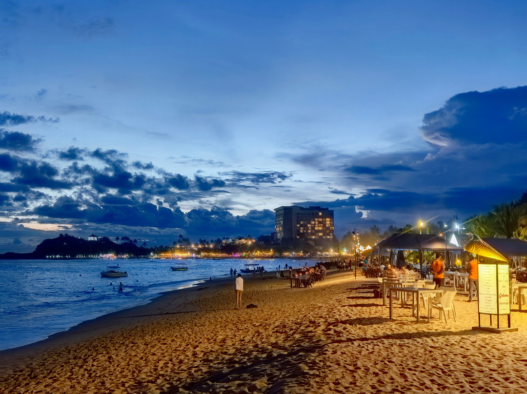 翻译:据传说,这个美丽的村庄和海滩的名字来源于一位遭遇海难后定居于此的印度商人。乌纳瓦图纳绵延一公里的海滩呈弧形展开。它最大的优势在于双层礁石吸收了冲击力,使得这里几乎没有强浪。海滩的坡度也十分优美,平缓的坡度使其非常适合带孩子游泳,也适合不会游泳或游泳水平较差的人。这或许就是乌纳瓦图纳不仅深受俄罗斯游客喜爱,也深受当地人欢迎的原因。不过,在我看来,斯里兰卡人会游泳的比例似乎比印度人高得多……然而,水深在10-15米处开始变深。海滩的另一个优点是日光浴躺椅随处可见。它们位于海滩酒店和餐厅附近。只需在酒吧点一杯饮料,就可以随意使用。非常方便又实惠……我们尤其喜欢蓝调小酒馆餐厅。乌纳瓦图纳还没有像其他度假胜地那样商业化,所以几乎没有像船只、香蕉船、滑翔伞之类的额外服务。对我来说,这是个优点。你可以悠闲地游泳……海滩的中心区域更有意思,虽然不知为何大多数度假者都聚集在北部,即使河口就在附近。顺便说一句,那里的气味不太好闻……也许是因为大部分餐厅和几家酒店都在那里。最后,除了主要景点之外,乌纳瓦图纳海滩的日落也美不胜收。即使是最内敛的人也会被它的日落所吸引。值得一看……