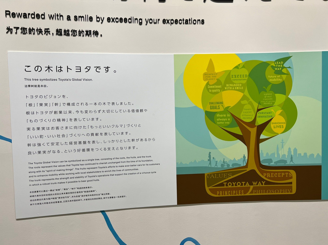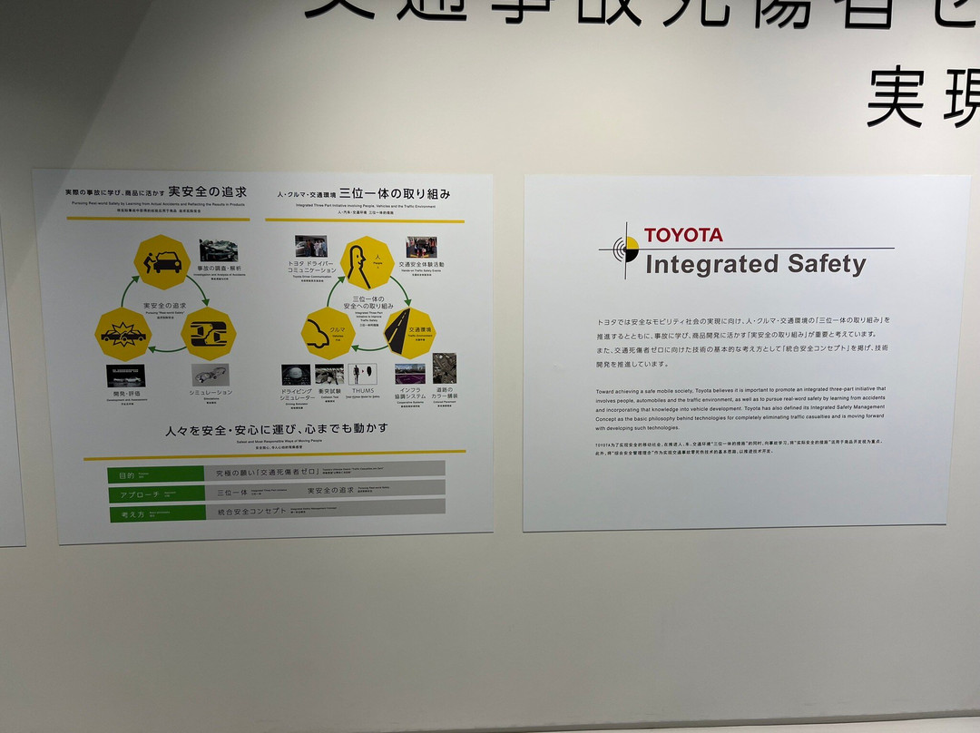 翻译:丰田会馆博物馆详细介绍了丰田在制造和汽车安全方面的创新汽车技术。安全模拟器展区的一大亮点是“驾驶”。另一个有趣的演示涉及革命性的车身焊接技术的开发,该技术可提高汽车的安全性和强度。该技术开发过程中的所有步骤都按顺序清晰地展示出来。