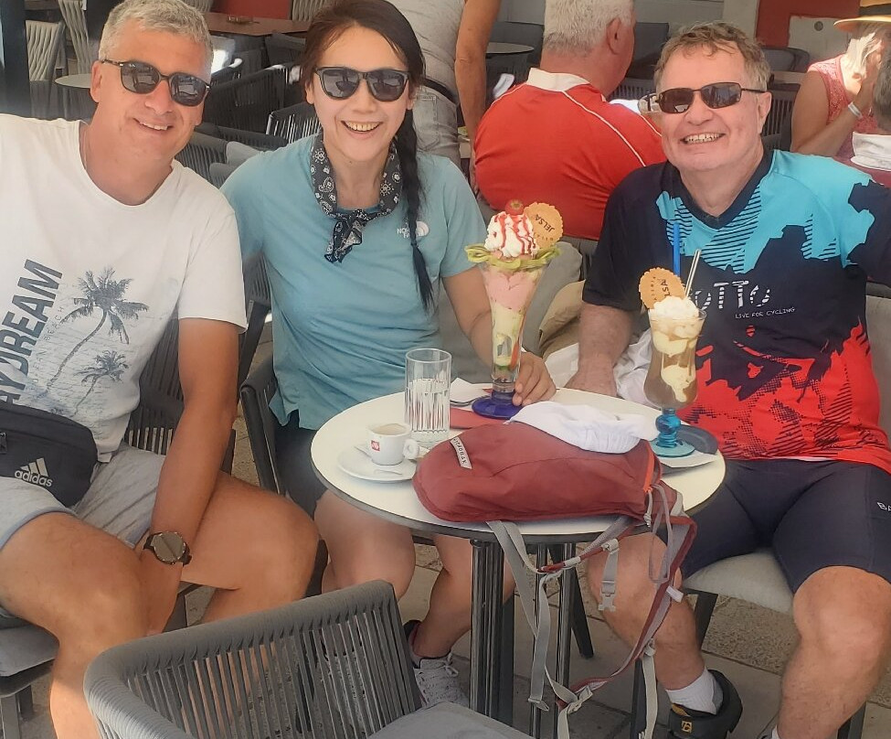 翻译:这是一次很棒的旅行。我很喜欢他们的电动自行车。我可以每天锻炼,需要的时候就发动。它非常容易使用,我正在考虑买一辆回家。骑行路线非常美丽。Tonci 的家乡赫瓦尔岛的 Vrboska Otok 拥有风景如画的海湾和令人垂涎欲滴的冰淇淋。骑车去 Tonci 家的橄榄农场感觉很特别。在那里,我们吃了 Tonci 烤的当地鱿鱼(他爸爸捕捞的)。骑行穿越科尔丘拉岛高耸的岩石山脉和半岛上私密的葡萄园是一次非常特别的体验。Tonci 和 Toma 一路陪伴着我们,尤其是我的伴侣,他全程骑着混合动力自行车。Toma,你是一位天才的导游和 Anti,谢谢你。让我们谈谈美食,这次旅行也应该被称为克罗地亚美食盛宴。没有任何其他自行车公司能与之相比,Backroad 也是如此。你会看到它的不同之处。