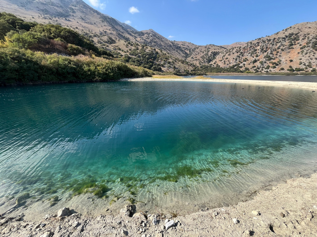 翻译:我们在旅游旺季的最后时刻看到了这个美丽的湖泊,当时一切都在关闭,游客也几乎散去。它美丽而宁静,但比我们预期的要小得多。尽管如此,这是一个非常愉快的停留点,也是一个绝佳的拍照机会,也是我们在克里特岛的最后几个停留点之一。我们在去机场的路上去了湖边,四处走走,在湖边的餐厅喝了一杯,景色完美。夏天这里一定很混乱,但天气很好,是个相当悠闲的地方。我们碰巧在那里举行特奥会的那天在那里,这是一场湖上的划船比赛。没有发布照片,因为拍摄对象是未成年人,但看到社区支持他们自己,真是太暖心了。