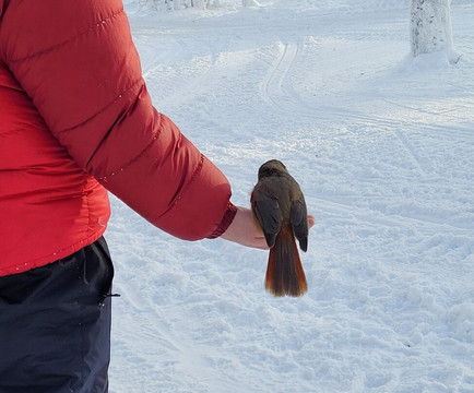 The cafe before the final ascent served great donuts and hot and cold drinks. The donuts are a must. Outside the Artic Jays started to come in and our guide give us some nuts to feed them. As we were the only ones there they felt safe enough to land on outstretched hands to feed.