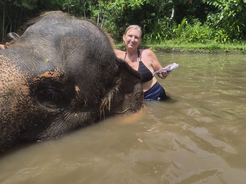 翻译:我和丈夫从英国来巴厘岛旅行,期间去了巴厘岛大象泥浴乐园,这绝对是我们最难忘的经历之一。近距离接触这些温顺的巨兽令人心旷神怡,但真正让这一天变得特别的是饲养员们的热情和专业知识——尤其是普尔纳。