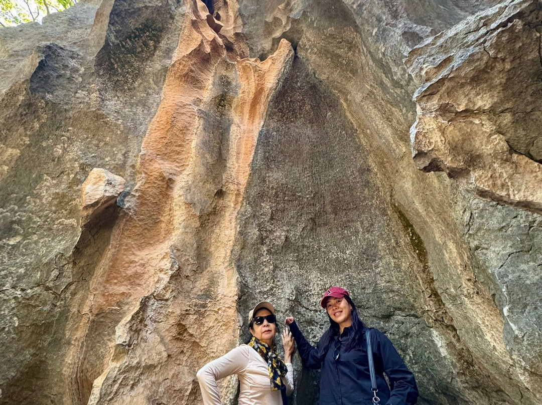 首先,你会遇到一片开阔地带,那里的岩石相对简单,之后便是石林。务必记住入口,因为这里有很多条路,很容易迷路,就像我们一样!步道上布满了台阶,有的需要上下攀爬,还有一些狭窄的通道,可能需要挤过去。为了体验这令人兴奋的旅程,请务必穿上结实的鞋子。