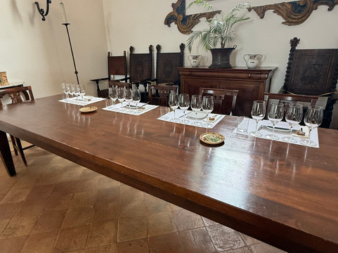 参观结束后,我们前往品酒室(由一座古老的教堂改建而成)品尝葡萄酒。安吉莉卡讲解了每款酒的特点,并推荐了与之相配的餐食。她的所有推荐都非常完美,极大地提升了我们的品酒体验。