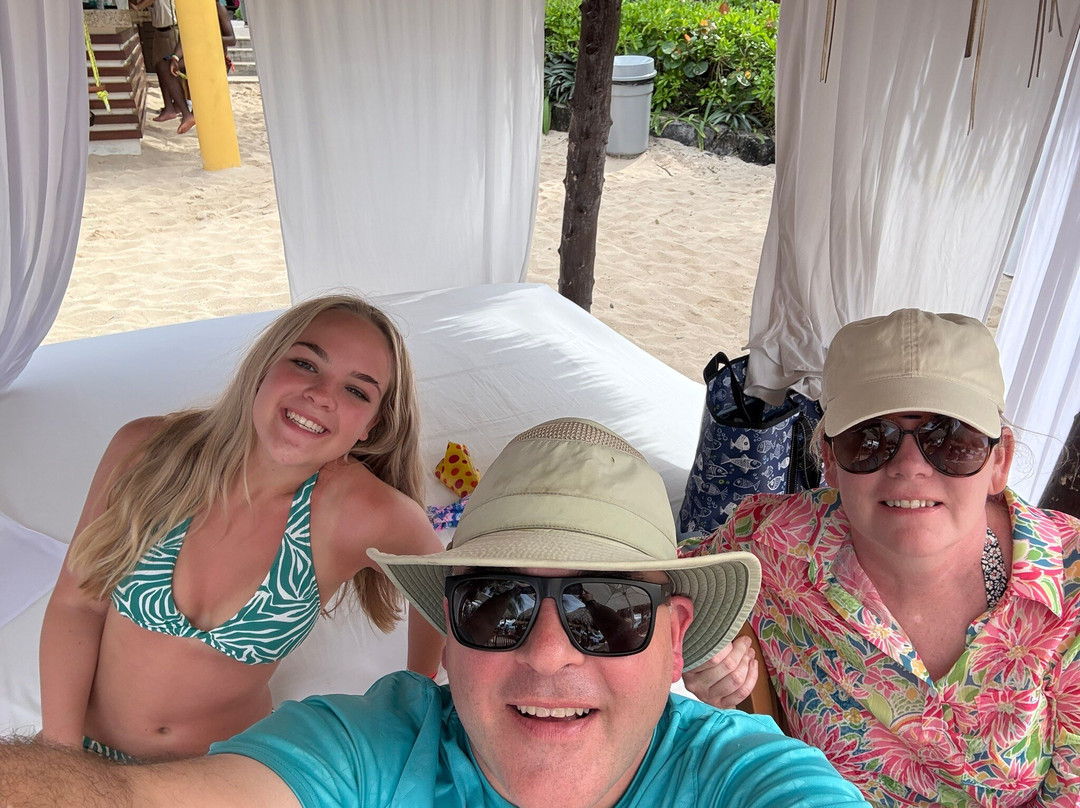 翻译:我们的船——海洋旋律号——当天停靠在科苏梅尔港,所以我们打车 20 分钟到达桑乔先生的住所。我提前几周为我的三口之家(包括我 16 岁的女儿)预订了一间小屋,新年那天我们到达时,受到了微笑和亲切的欢迎。小屋很不错,我们的桌子就在小屋前面。我们的服务员是 José(找他)。他照顾我们,让我们在海滩上尽情享受了几个小时的饮食。饮料从未空过,食物也很棒。他们有自助餐,但也会提供定制食物作为餐桌和小屋套餐的一部分。游泳池很漂亮,有游泳池酒吧。海滩区不是很大,但有足够的座位和躺椅供每个人使用。妻子和女儿在小屋套餐中享受了按摩,非常喜欢。音乐震耳欲聋,声音响亮,绝对是派对氛围:有趣的氛围!强烈推荐。