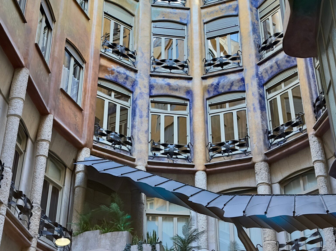 点评:Подошла я к этому дому и очень удивилась - а где очередь? Когда-то в первый визит в Барселону простояла 1,5 часа на вход. Ну, думаю, все теперь покупают билеты онлайн и их просто нет в продаже. Зашла в кассу - билеты есть, но… 30 евро, с аудиогидом 38 или 39. Правда, для резидентов Каталонии 12. С одной стороны, ограничивать поток туристов высокой стоимостью, может, и оправдано, но это уже явный перебор. Я бывала здесь раньше, поэтому за 30 евро не пошла, полюбовалась домом снаружи, хотя это не дает представления о волшебной крыше. Если придете семьей, то лишь за одну локацию придется выложить около 100 евро? Зашла в сувенирный, заглянула во двор - бдительный охранник сразу напрягся. Если вы впервые в Барселоне и архитектура Гауди вам отзывается, то все же сходите, на крыше очень красиво, но при планировании визита в этот город планируйте свой бюджет грамотно и расставляйте приоритеты, потому что таких локаций здесь много. Это действительно красиво, необычно, но выльется в большие траты.