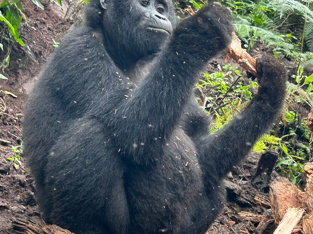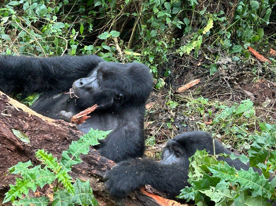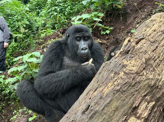 我们参加了一条难度适中的徒步路线,大约花了1.5小时去看大猩猩。我们被告知会看到一个9只大猩猩的家族,但任何事情都无法保证,而且有些时候可能看不到它们。不过,我们真的看到了一只银背大猩猩和两只黑背大猩猩,它们离我们非常近,几乎就在我伸手可及的地方,其中两只甚至还分别从我身边擦身而过。遇到这种情况,你必须保持绝对的静止和安静。