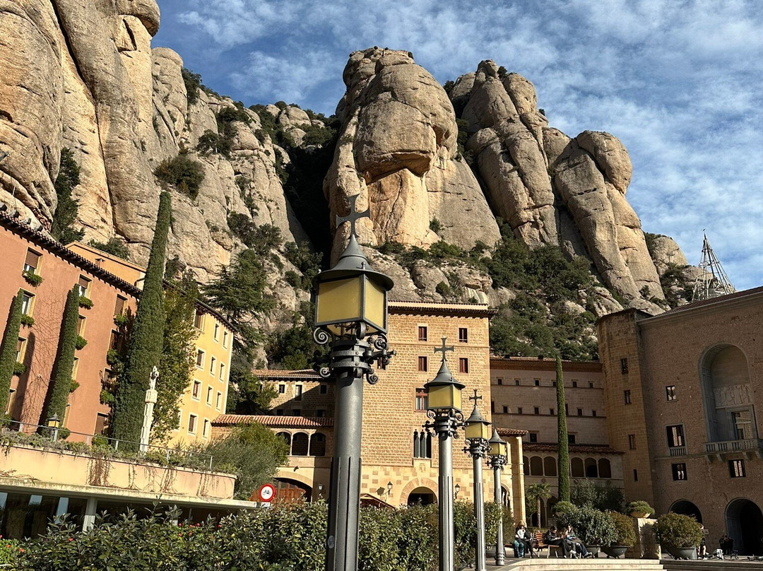 翻译:与亚洲和东欧的山区不同,西欧的山地修道院十分罕见。因此,如果您的度假城市附近有一座山地修道院,那么前往参观绝对是明智之举,可以暂时远离欧洲大多数城市千篇一律的大教堂和宫殿。正因如此,如果您身在巴塞罗那,那么至少安排一天时间前往蒙特塞拉特修道院 (Montserrat Monastery) 是绝对不容错过的。这座修道院坐落在距离巴塞罗那约 48 公里的蒙特塞拉特山上。山地修道院总是能激发我的感官和想象力,我不禁为这座几个世纪前建造的宏伟修道院建筑群而感到神秘和惊叹。这座令人叹为观止的修道院建筑群正式名称为圣玛丽亚·德·蒙特塞拉特修道院 (Santa Maria de Montserrat),始建于 1025 年,几个世纪以来一直是重要的宗教朝圣地。如今,蒙特塞拉特仍然是一座活跃的本笃会修道院,中心是一座大教堂,修道院内设有博物馆、学校、餐厅,约有80名修士常住于此。目前仅大教堂、博物馆和中庭对游客开放。蒙特塞拉特的一大必游之地是触摸黑圣母像的手,据说触摸它能带来祝福。为此,您需要做好排队的准备,才能到达大教堂祭坛后面的宝座厅。除了这番精神之旅,您还可以欣赏周围连绵起伏的壮丽山景,或者选择众多山间步道之一进行徒步旅行,这将使您的身心得到彻底的放松。前往蒙特塞拉特相对便捷,您可以选择三种不同的交通方式:乘坐地铁到西班牙广场地铁站,然后乘坐R5区域列车约一小时到达山脚,最后乘坐缆车或索道到达山顶的修道院。如果说有一条通往天堂的阶梯,那就是这里——一个为游客提供独特的精神、文化和自然体验的地方。