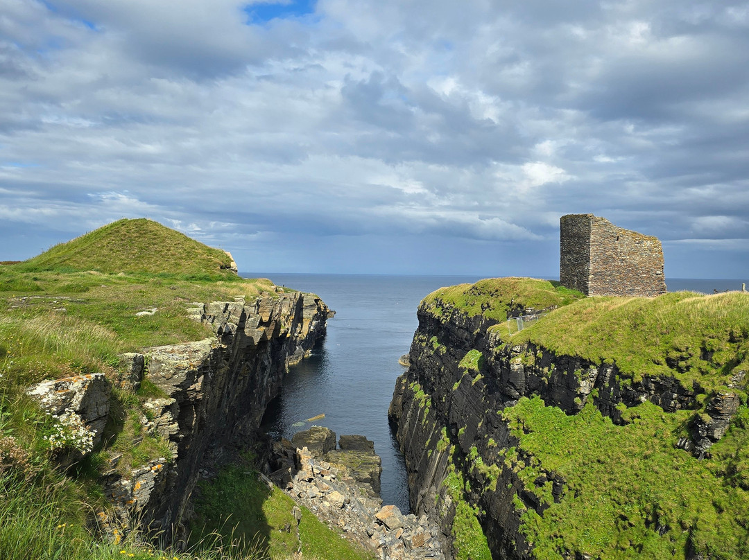 城堡的确切起源已不可考,但据推测大约在14世纪后期。遗址坐落在岩石山脊上。这里曾经有一座吊桥,但早已不复存在,四层塔楼的大部分也已倒塌。目前,遗址已被围起来,禁止通行。但你仍然可以欣赏到遗址的美景——当它还屹立在那里时,想必一定非常壮观。就在海岸边,眺望大海。