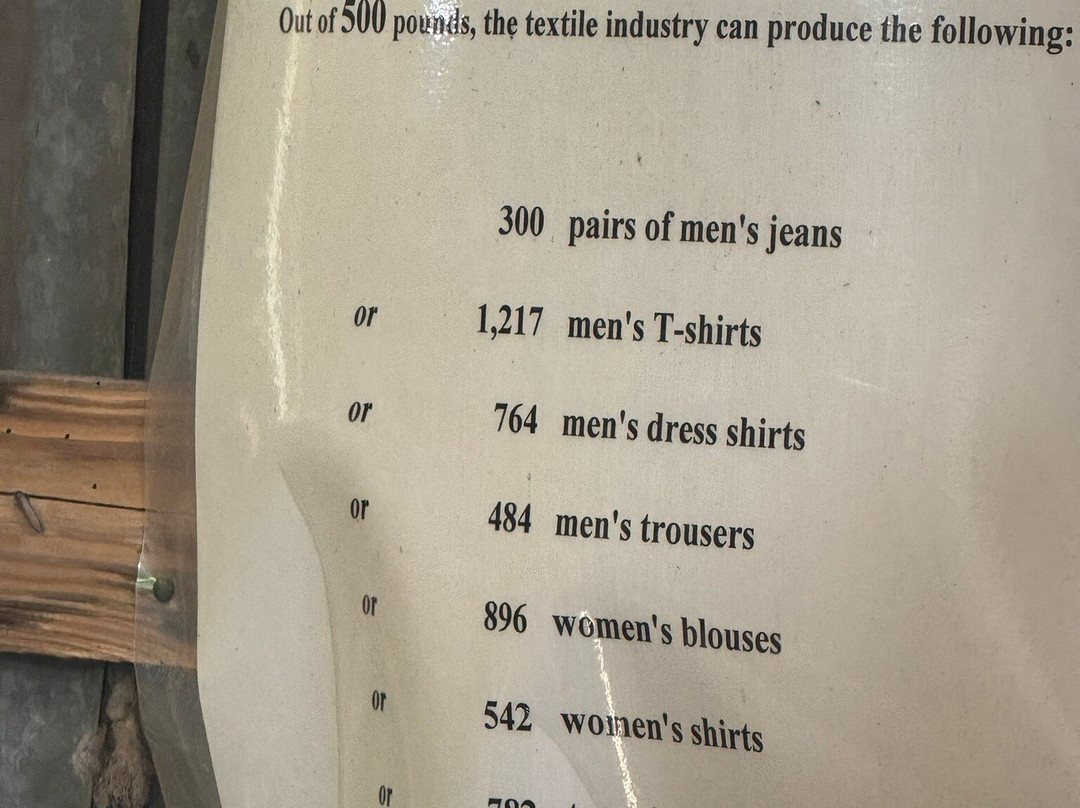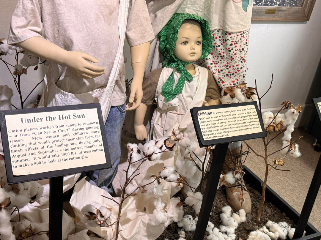 Upon arrival tours are ushered into the cotton museum for an oral history, a short film, and exploring exhibits. The museum focuses on the surrounding communities harvesting cotton. No mention of the relationship of the grueling hardships of slavery and slave produced cotton.
