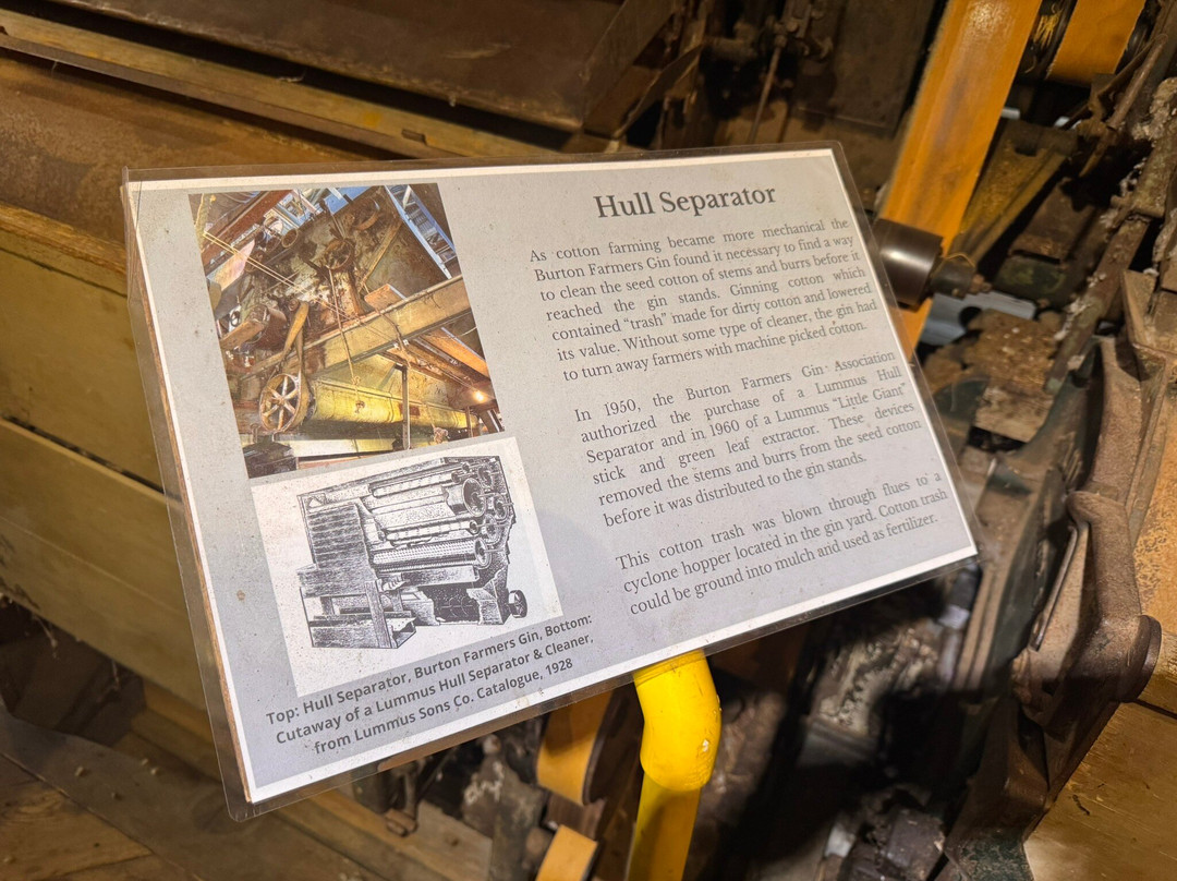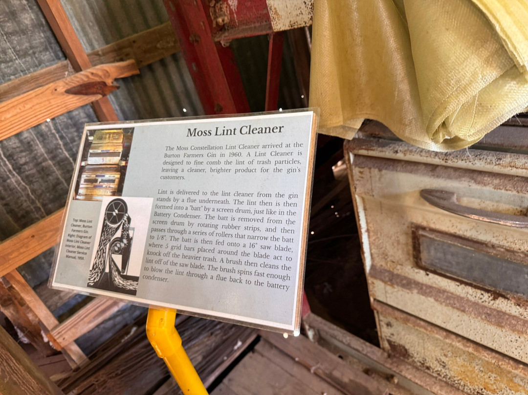 翻译:这是美国最古老的轧棉机,被指定为国家历史地标,其原始位置位于德克萨斯州伯顿的一个小型社区镇。