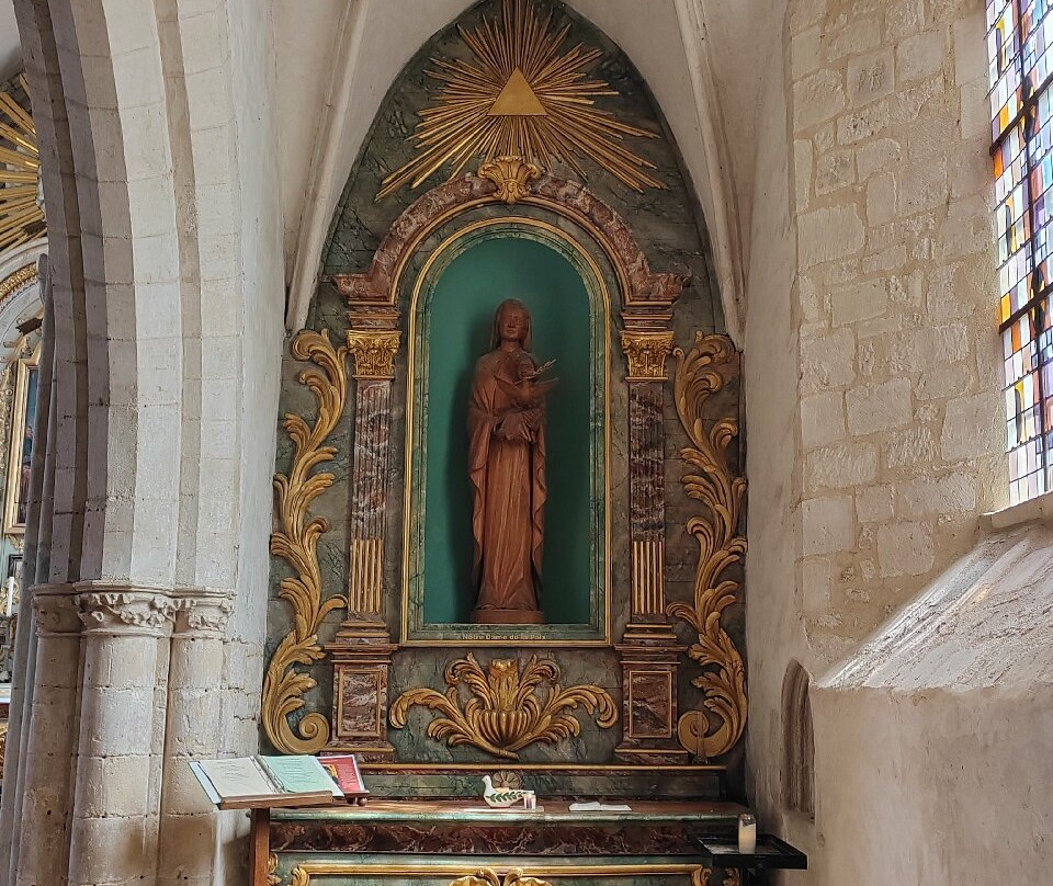点评:Je vindt deze kerk midden in het dorp Sainte-Mère-Église. De kerk, voltrokken in Romaanse stijl, dateert grotendeels uit de 16e eeuw. Binnen heerste bijna een serene sfeer. Bijzonder, want de kerk - alsmede het dorp - trekken veel toeristen. Sainte-Mère-Église speelde namelijk een belangrijke rol in de invasie door de geallieerden in WOII. Op 6 juni 1944 werd het dorp, als eerste van de invasie, bevrijd door Amerikaanse luchtlandingstroepen. Eén van de parachutisten, John Steele, bleef bij de landing met zijn parachute aan de kerkklok hangen. Hij werd onder vuur genomen door Duitste soldaten en hield zich twee uur lang voor dood. Nadat hij toch gevangen genomen werd, wist hij later te ontsnappen en zich weer bij zijn divisie te voegen. Ter herinnering hieraan hangt nu aan de kerk hangt een parachutistenpop. Om de parachutistenpop voor toeristen beter zichtbaar te maken hangt de pop niet aan de klok, maar aan de zijkant van de toren. Een kerk met een verhaal dus. Mooie kerk ook, zeker een bezoekje waard.