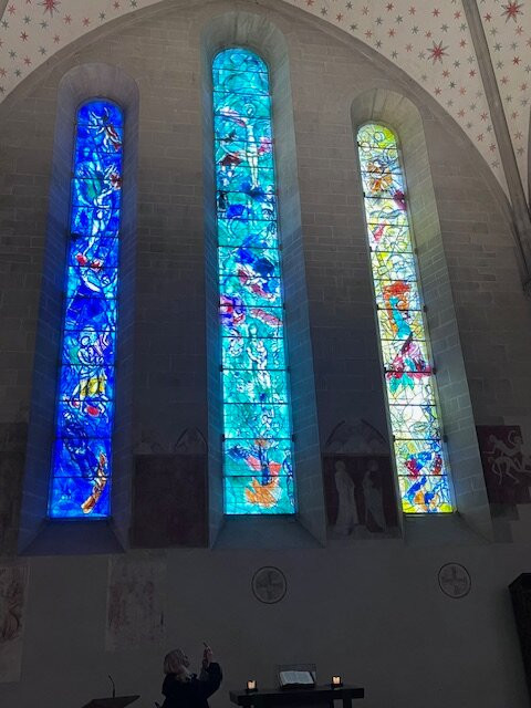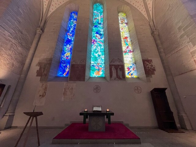 The real draw here is undeniably the Chagall windows, which infuse the space with color and artistry. Each window tells a unique story, captivating visitors with their beauty. They are worth the visit alone, offering a striking contrast to the otherwise understated interior.
