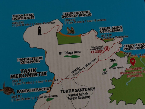 你可以选择乘坐各种船只前往海龟海滩或猴子海滩,或者两个海滩都去。价格都很合理。我们选择步行前往猴子海滩,然后乘船返回,每人45马币(8.5英镑)。