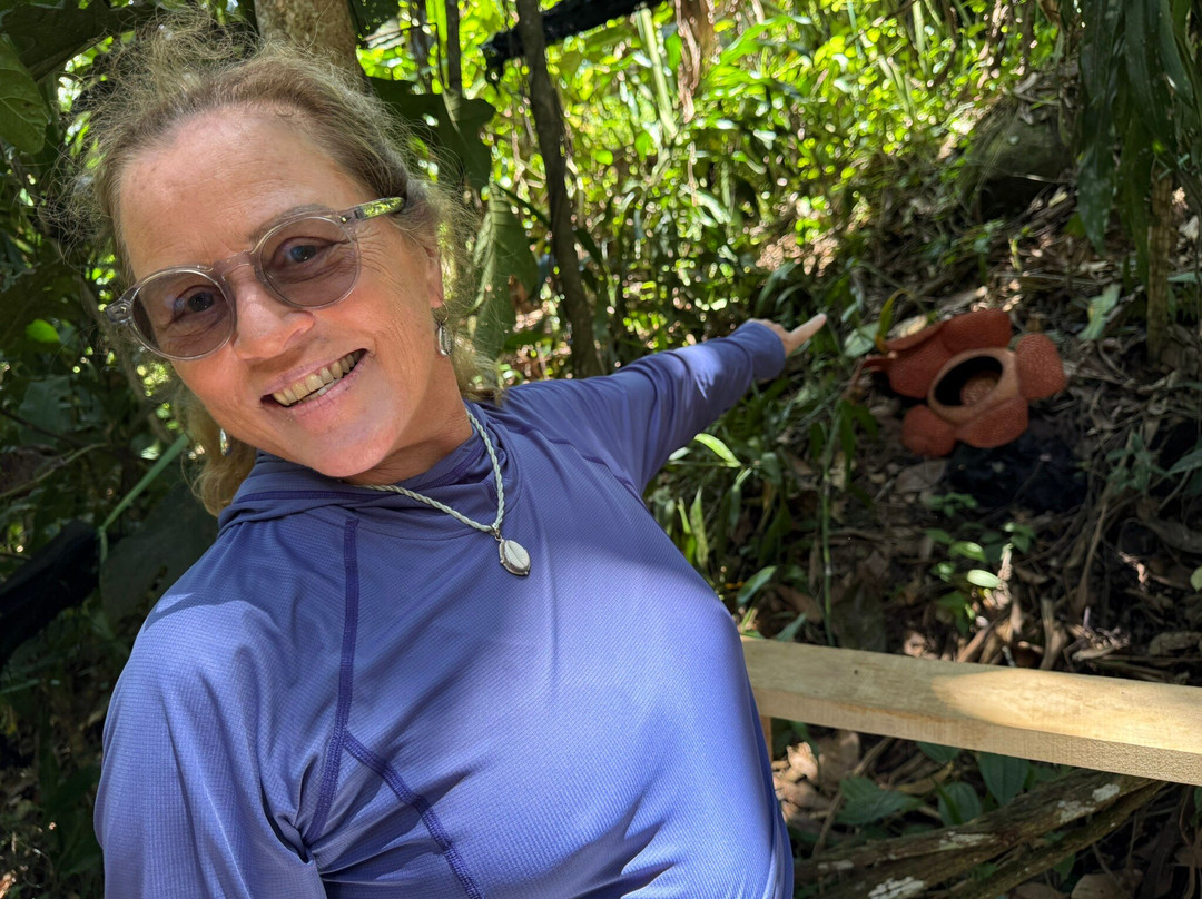 穿过雨林到达那里本身就是一种体验——潮湿、翠绿,到处都是昆虫和鸟儿的鸣叫。突然,大王花就出现在眼前。它看起来几乎不真实,就像一座从丛林地面雕刻而成的巨型雕塑,有着深红色的色调和独特的纹理。尽管我们看到的花朵体型适中,但它们仍然令人叹为观止。