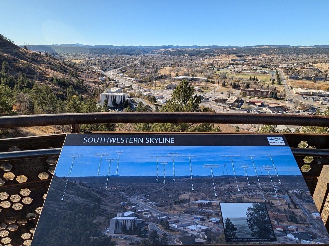 如果你走楼梯,路会很陡,但这里适合轮椅通行,但你最好有人推着你上山。我觉得太陡了,不适合自己坐轮椅上山。我们在那里待了大约 2 个小时。看到了一些很棒的恐龙雕像。每只恐龙都有标牌,告诉你关于恐龙的详细信息,读起来很有趣。从山顶上看拉皮德城的景色令人惊叹。我希望 VC 能开放,但那是周日,淡季。这是免费参加的。孩子们在爬恐龙。