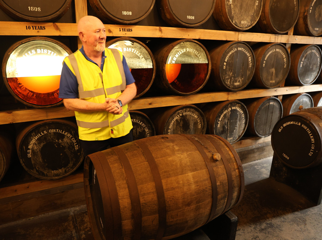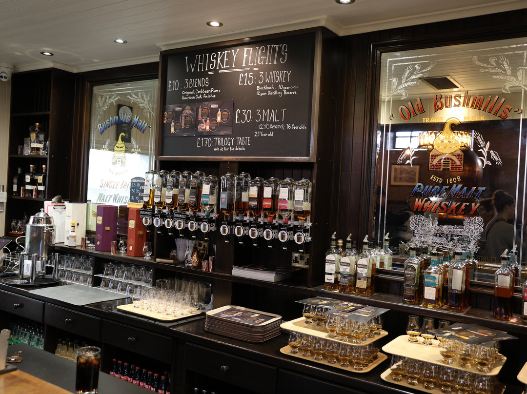 点评:Always wanted to go here since we first started coming to Ireland in the 90's to see my wife's family. Did the premium whiskey tasting tour, which was excellent, where you get 6 different whiskeys to try. Good instruction on how to observe, smell and taste each. Also great information and blending and aging of each. You cant take pictures in the distillery itself but outside, in the barrel "smelling" room and in the tasting room. Noel our guide was great! He was very informative and answered all my quesions as I was the most into whiskey in the group of 6 with my two over 21 daughters and their significant others. You get to smell the barrel hole of 3 aging barrels to figure out which they are Sherry, Bourbon or Port. He was great with my kids at the tasting session who were not a big whiskey drinkers so that was fun. You get a full tasting pour of each working up from regular 4 yr bushmill, to 10, 12, 16 and even my favorite 21yr and the extra limited release 14 yr barrel proof (96) recommended by him to try at the bar afterwards. You can get many of these in the states but not the 12 or 14 yr and the 21 yr is much lower cost here than in the states. Tour was well organized and you actually go through the operating distillery as many tours i.e. Guiness brewery do not do that anymore. Nice gift shop at the end with all the whiskeys for sale there.