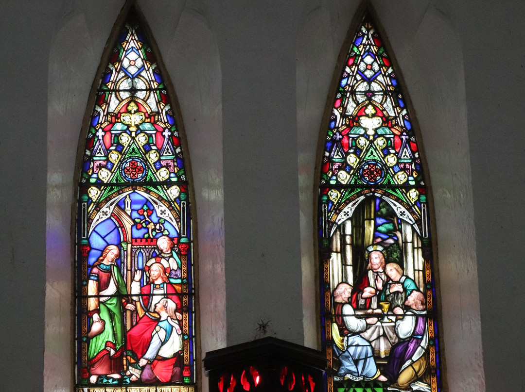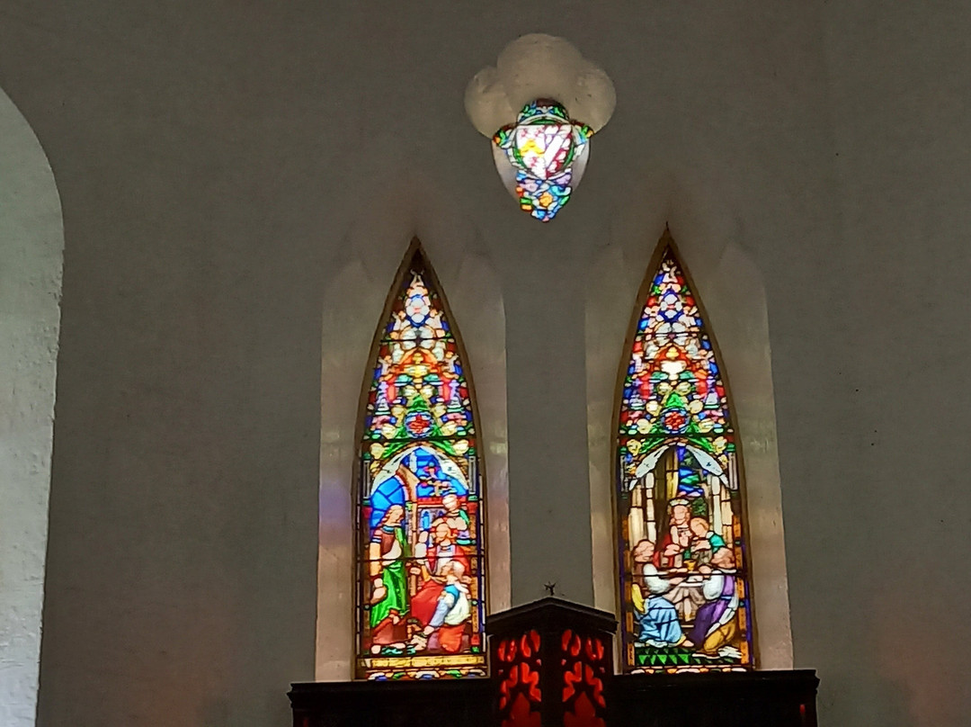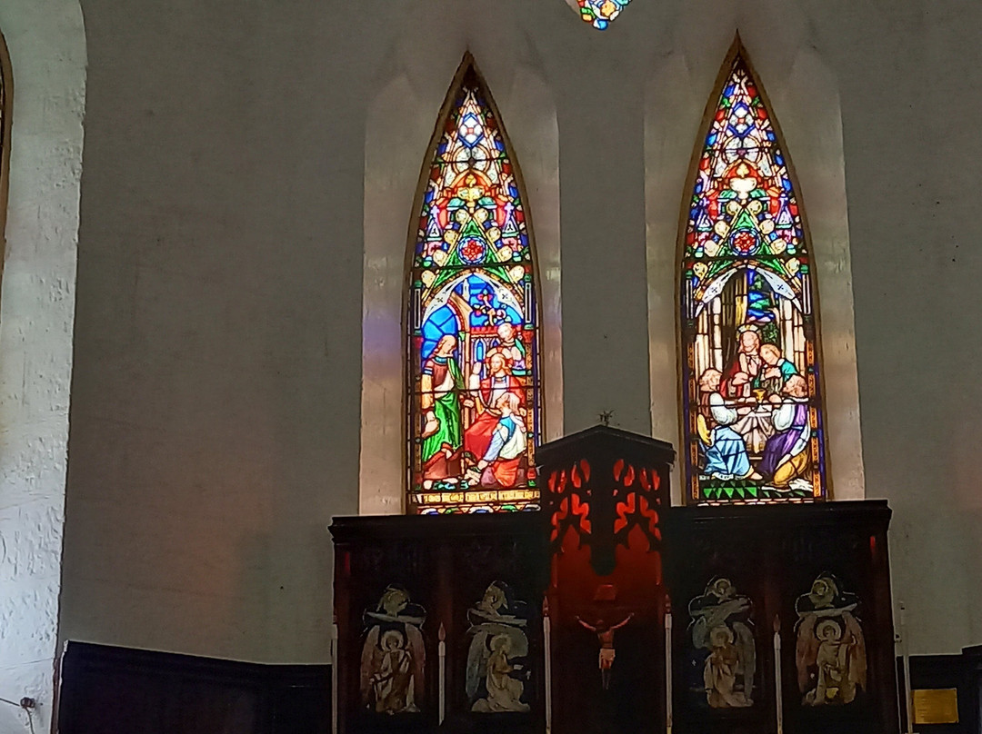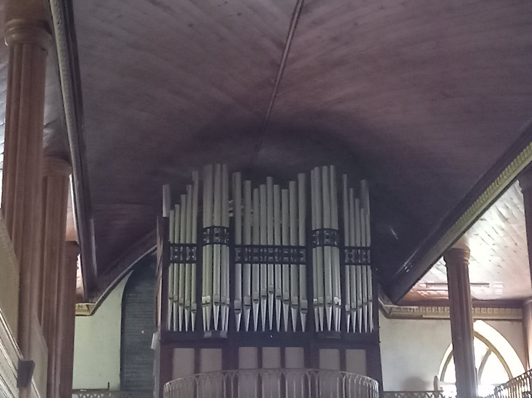 教堂为哥特式风格。教堂内部,我们可以欣赏到美丽的彩色玻璃窗和一个由六种不同木材雕刻而成的讲坛。入口处,两段弯曲的木质楼梯通往上方,那里放置着管风琴。