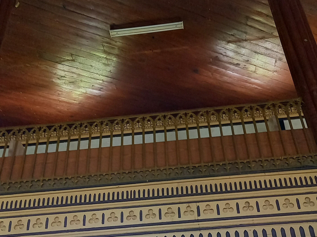 E' in stile gotico, all'interno possiamo ammirare delle bellissime vetrate un pulpito intagliato con 6 diversi tipi di legno, all'ingresso due scale curve anch'esse in legno portano alla parte superiore dove è posto l'organo.