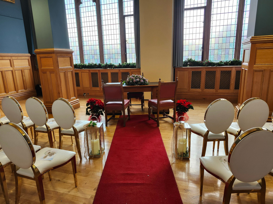 点评:Perfection! That is the only word to describe my experience at the Guildhall 2024 December 07. My husband Jean-Robert Lafont and I first visited the Guildhall three times during the Halloween Festival in 2023 and all three occasions spoke with a lovely woman by the name of Siobhan, one of the tour guides. The third time we visited she took us on an impromptu tour of the Guildhall to show us the different wedding facilities and a month later we made the decision as two United States citizens to be wed in Derry.