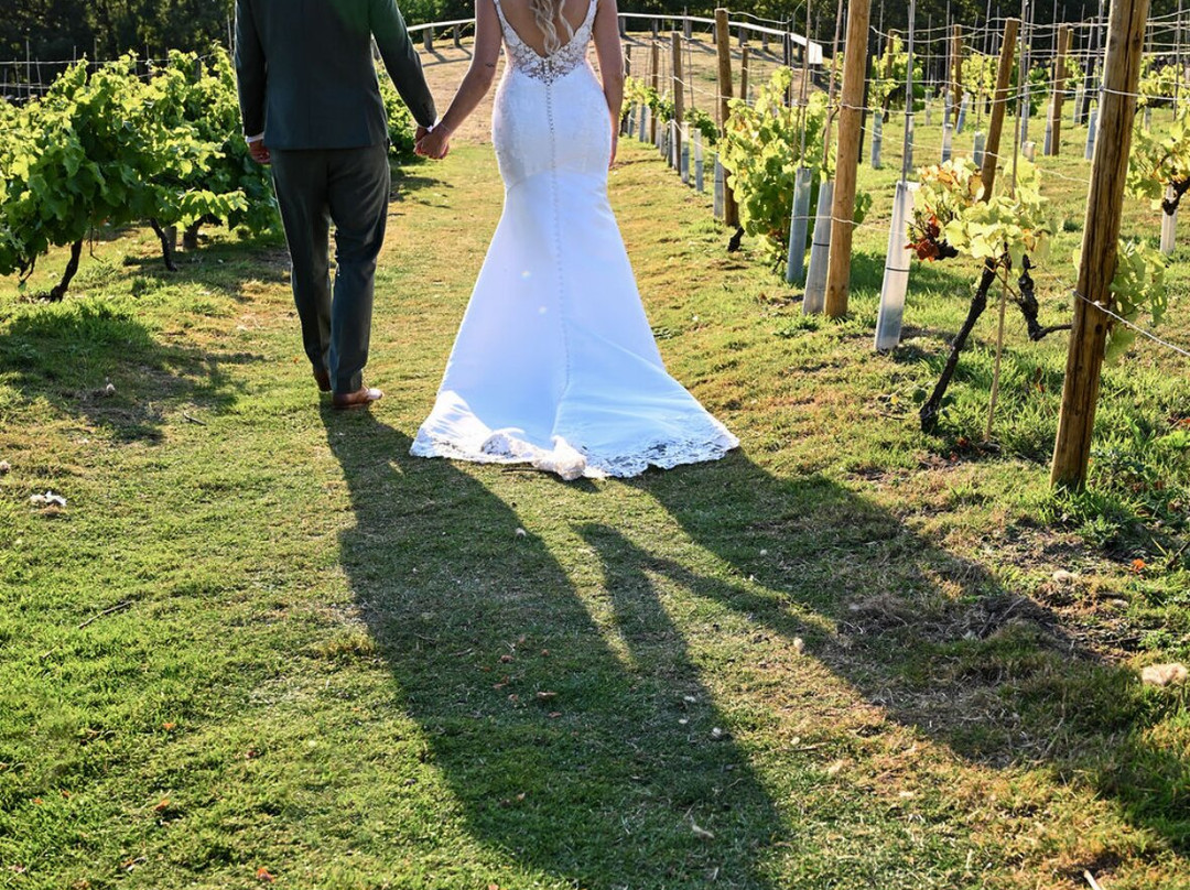 翻译:从我们第一次参观葡萄园开始,工作人员就非常友好热情,我们交谈过的每一位工作人员都无微不至。我们的婚礼在2025年8月举行,那是最特别的一天。场地美极了,工作人员竭尽全力,食物美味可口,每个细节都堪称完美!新娘套房最近刚刚翻新,非常漂亮。我们真心喜欢婚礼的一切,对工作人员的感激之情溢于言表。我们结婚的房间美极了,景色令人叹为观止。婚礼当天不对公众开放,我们非常喜欢。10/10,100%推荐。