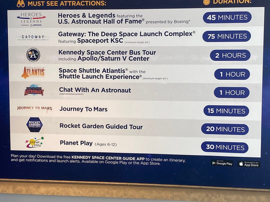 肯尼迪航天中心非常大,所以务必提前规划行程,仔细选择参观路线,才能获得最佳体验。总而言之,这里绝对不容错过。这是我一生中参观过的最好的博物馆,我一定会再来的。我强烈推荐给所有热爱天文、想要了解更多天文知识,或者只是来此地旅游的人——你绝对不会后悔!