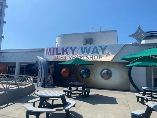 In addition, there are fun interactive experiences and simulators, such as the space shuttle simulator. The park also offers several restaurants with great food. We stopped for ice cream at the Milky Way ice cream parlor, which was delicious. Unfortunately, we didn’t have time to visit the gift shops, but there are several throughout the park.