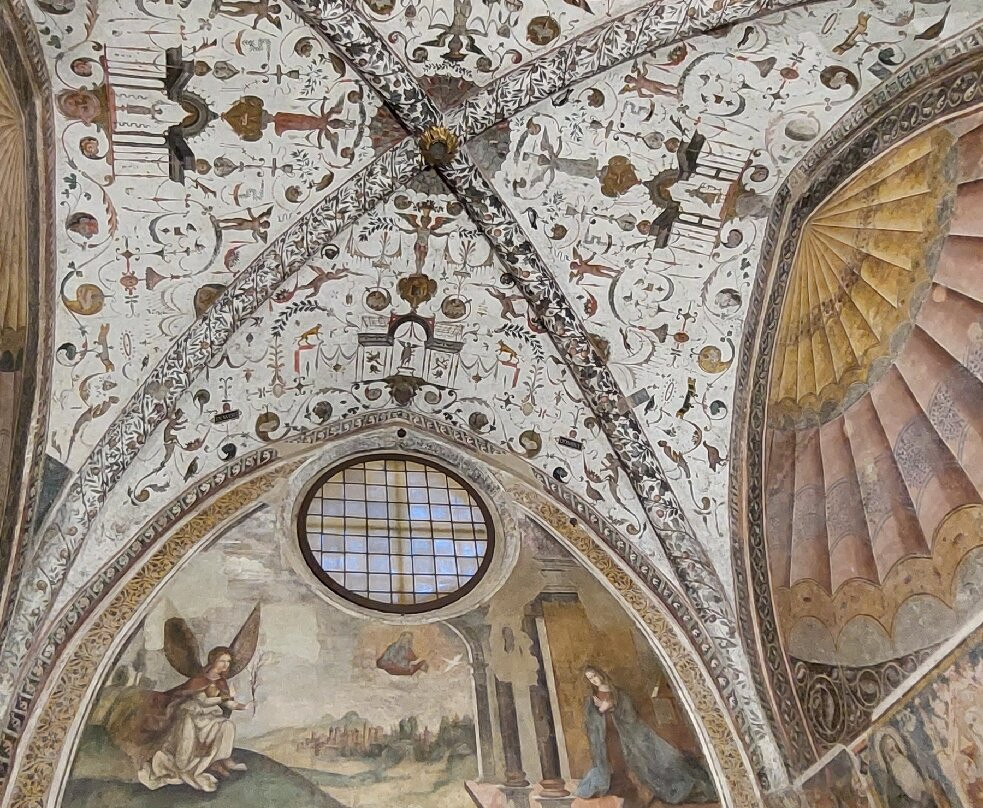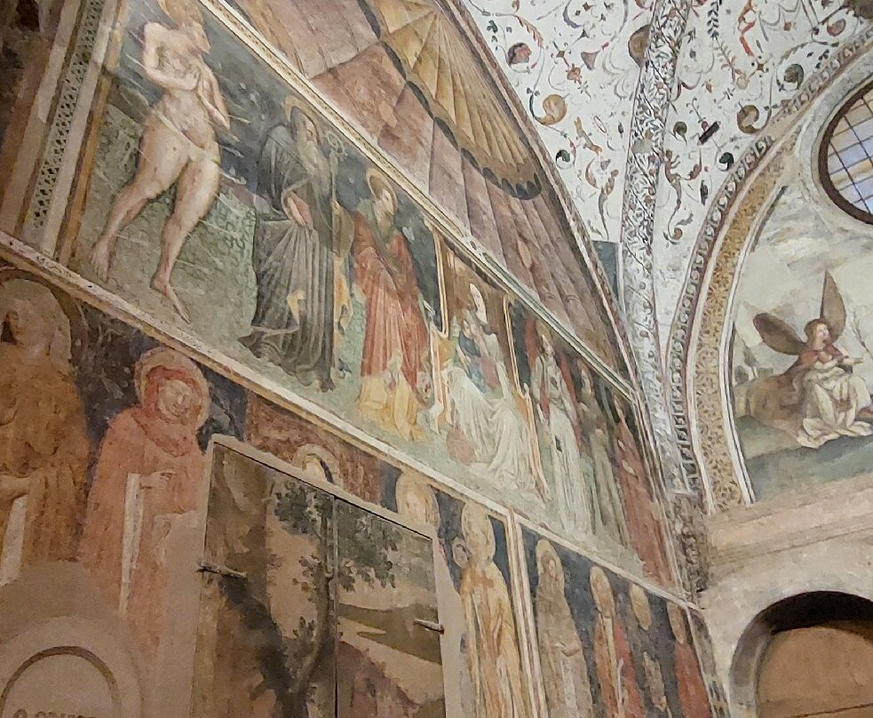 翻译:您或许并非信徒,但到访此地定会令您印象深刻。此地散发的魅力、悠久的历史、精美的壁画、圣女贝娅特丽丝·德·埃斯特“流泪”的奇迹、以及从分隔对外开放教堂和仅供11位修女居住的教堂的栅栏后传来的修女们的歌声,无不令人动容,并引发由衷的赞叹……可惜的是,那棵曾矗立于入口处的千年樱花树,已不复存在数年之久。