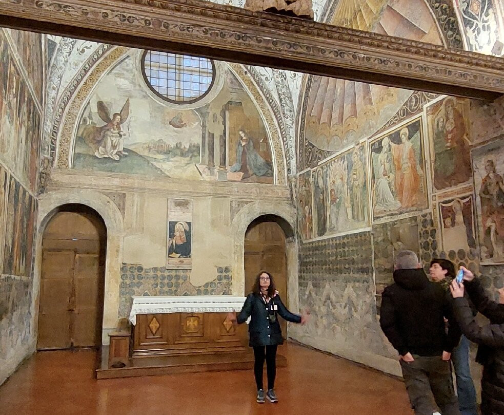 Vale la pena partecipare ad una delle visite guidate che permettono di entrare nella parte claustrale e ammirare i vari affreschi di influenza giottesca di fine '200 e di epoche successive che impreziosiscono le pareti e i soffitti e il luogo dove riposa la Beata, figlia del Duca Azzo d' Este e fondatrice di questo convento, e dove ancora oggi nel periodo della ricorrenza della sua morte dalla pietra tombale esce un liquido, ancora oggetto di studio, che viene raccolto e offerto a persone gravemente malate, dopo le testimonianze di miracolose guarigioni avvenute nei secoli.