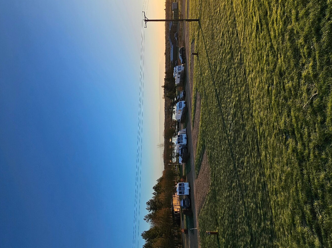 The pitch we stayed is a full service pitch with the elsan point a short walk away, the pitches are a generous size separated by small hedges 😊 there are separate ladies & gents shower blocks with a outdoor washing up point located by the ladies shower block. The showers get absolutely red hot 🥵 🔥 I couldn't stay under the water for the full 17 seconds it's on for, so it took me longer than normal to shower but I felt somewhat amazing afterwards in gale force winds walking back to the van 🥶🤣 the site is situated adjacent to train lines which run 24/7 from passenger trains to freight trains, but they've passed within 30 secs and are noisy but we didn't find them an issue 🛤 the site itself around by the touring pitches is dark so I would reccomend a good torch to see 👀 Do we reccomend? Absolutely 💯!! Will we be returning? Again, absolutely 💯!!