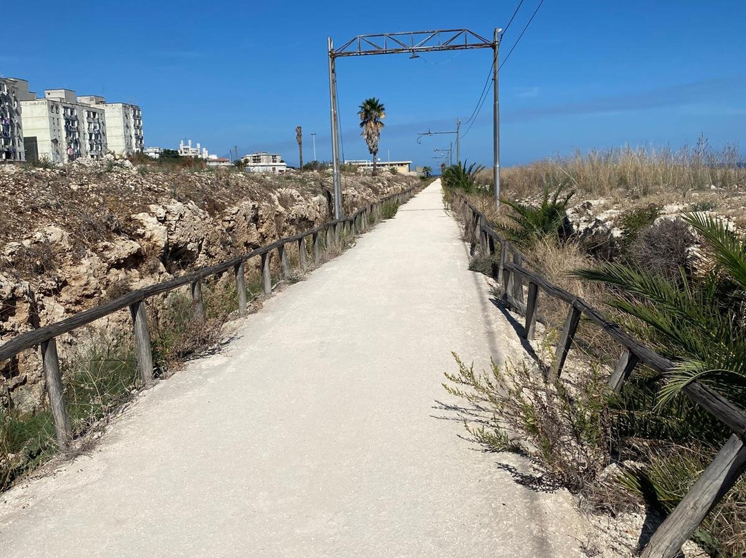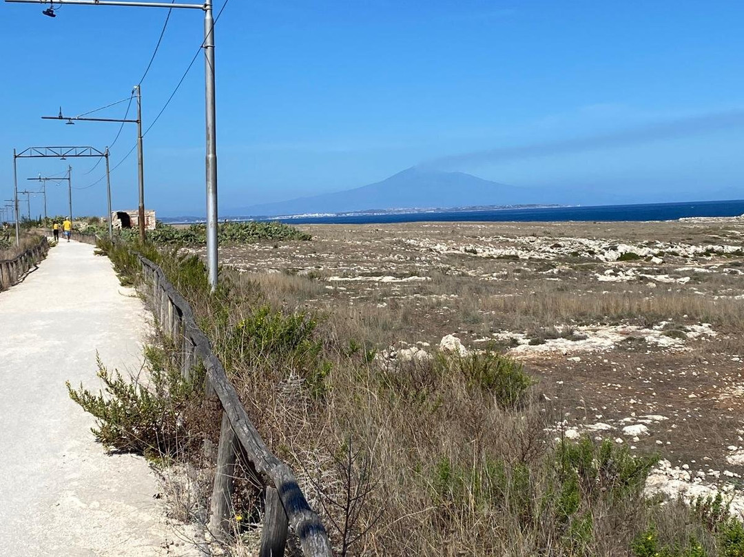 点评:Anche con un paio di scarpe comode fatevi i 5 km andata e I 5 km ritorno su una stradella pianeggiante che ricalca il becchino sedime ferroviario. Natura incontaminata e panorami da sogno su questo tratto di costa meravigliosa siracusana. Se caldo portatevi acqua perché forse fortunatamente non vi sono chiassosi punti di ristoro. Troverete molte discese al mare di cui 2 attrezzate con belle piattaforme di legno su incantevoli golfetti. Cercate di arrivare al km 4.5 dove le rovine della vecchia tonnara si affacciano su di in mare da sogno!