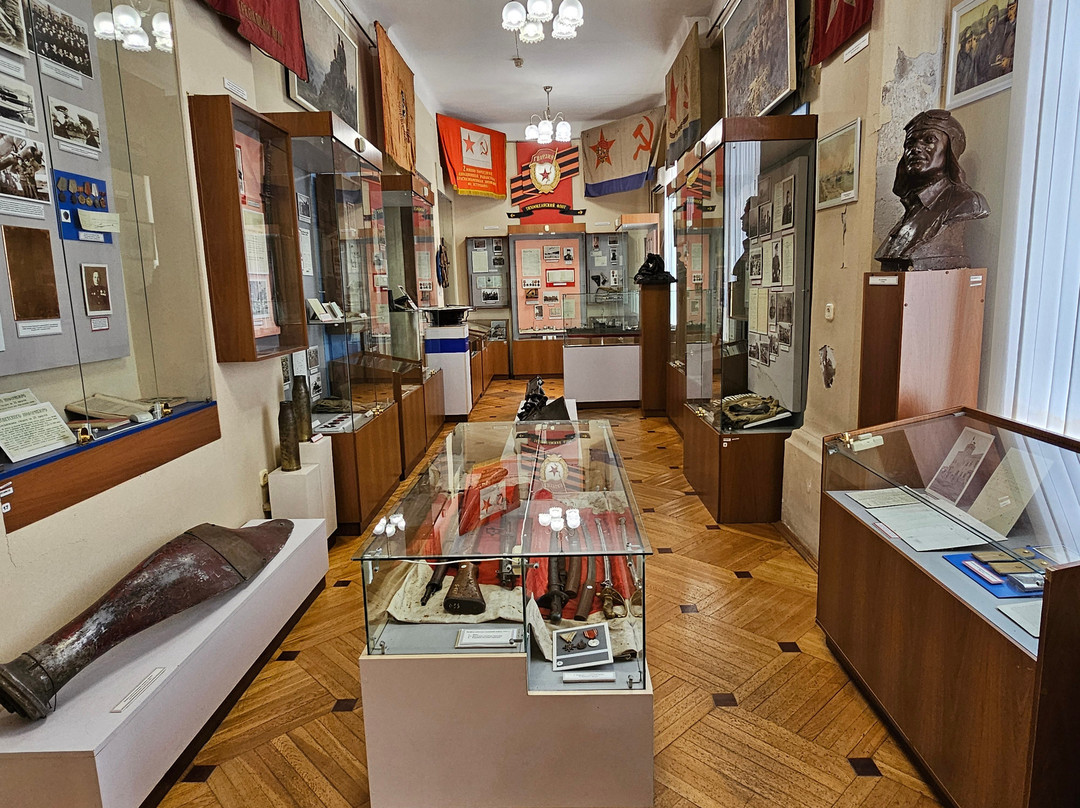 点评:Небольшой музей в красивом здании с интересными экспонатами. Основан в 1950-м году. В сентябре 1997 года музей переехал в это здание на Светланской улице, так называемый офицерский флигель, являющееся памятником истории и архитектуры. Оно было построено в 1902 году по проекту военного инженера И.И. Зеештрандта для проживания офицеров Сибирского флотского экипажа и их семей. Очень большая часть экспозиции находится на прилегающей к зданию территории. Её можно осматривать без билета. Стоимость билета чисто символическая - сто рублей. В музейной экспозиции представлены уникальные экспонаты: старинные награды, оружие, личные вещи знаменитых русских моряков начиная от С.О. Макарова. Много бюстов флотоводцев, картин с их портретами. Рядом с музеем красивый памятник погибшим участникам русско-японской войны. Пройдите к нему , посмотрите! Из проблем : Был в жаркий день. Долго осматривать экспозицию не получилось. Кондиционеров почему-то в здании нет, было очень душно.