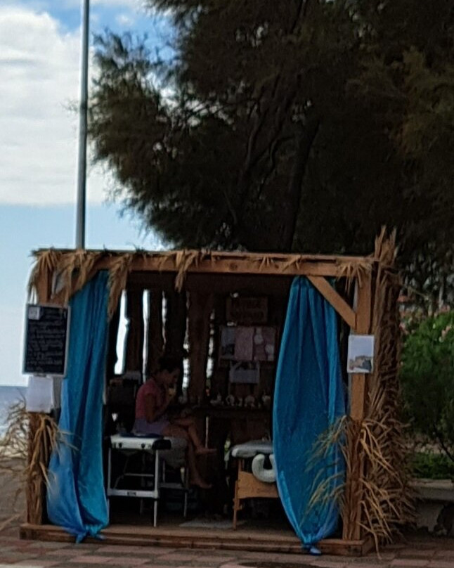There are some permanently fixed exercise equipment along the way as well as a number of well established palm trees. As we approached Praia do Reis Magos there was a massage kiosk on the promenade.