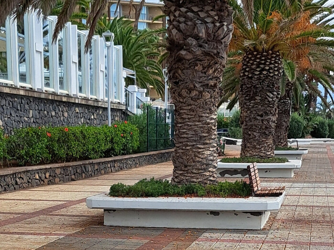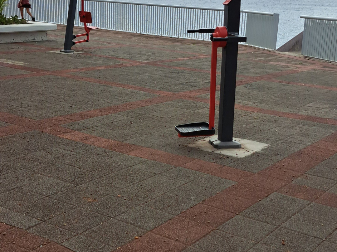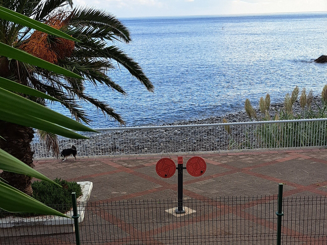 沿途有一些永久固定的健身器材以及一些生长良好的棕榈树。当我们接近 Praia do Reis Magos 时,长廊上有一个按摩亭。
