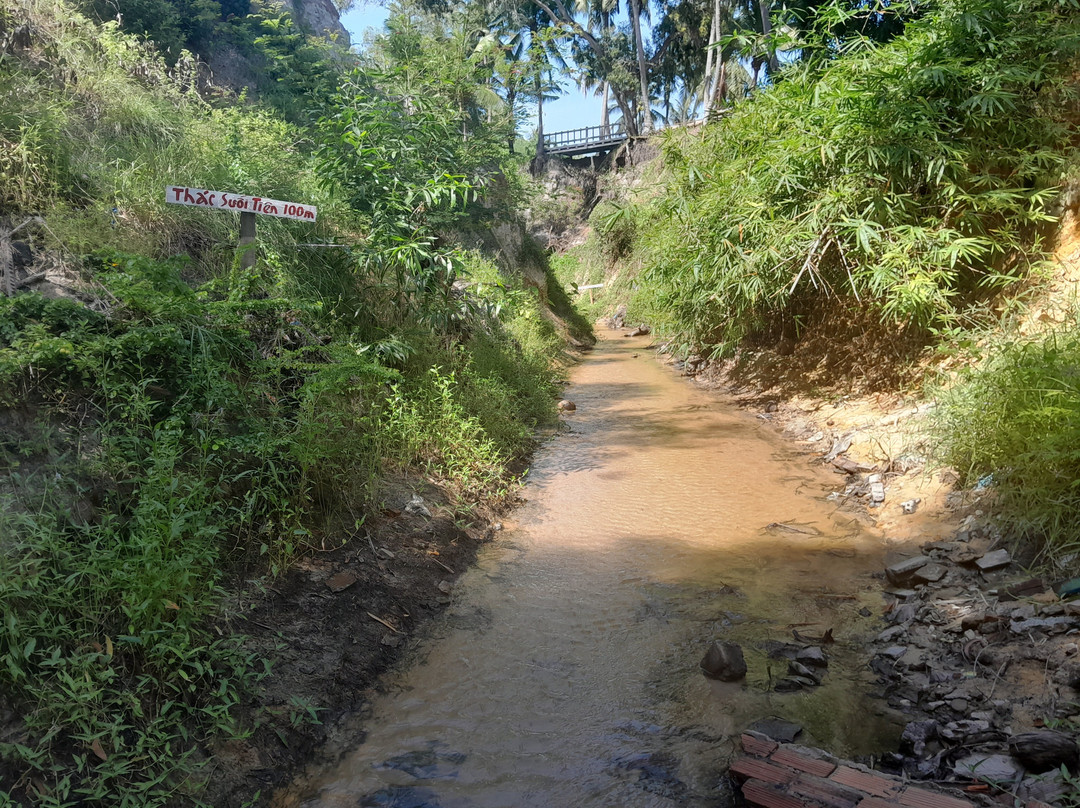 At the end of the canyon, there is a small waterfall. This is the source of the Fairy Stream Don't get too close, I was warned by a local that you can get swept under if you do.