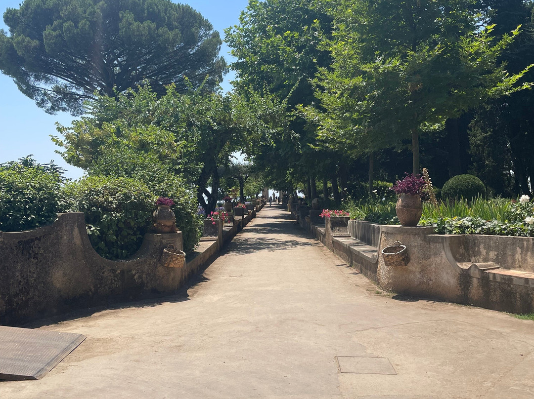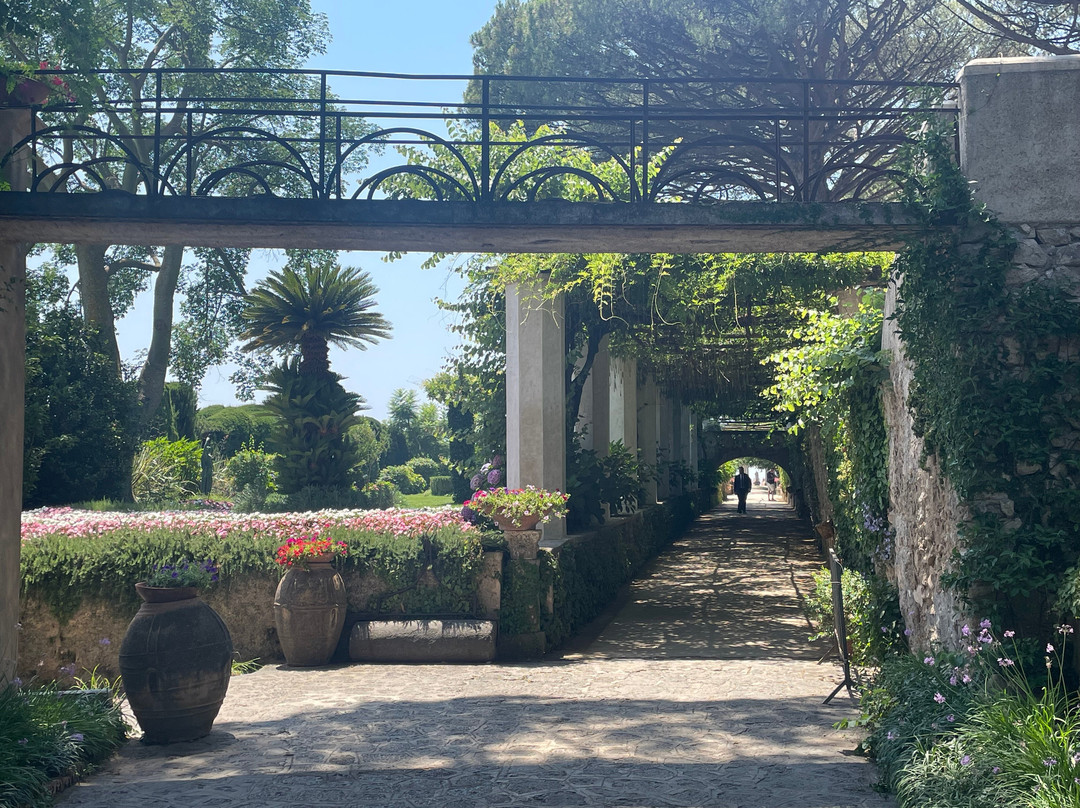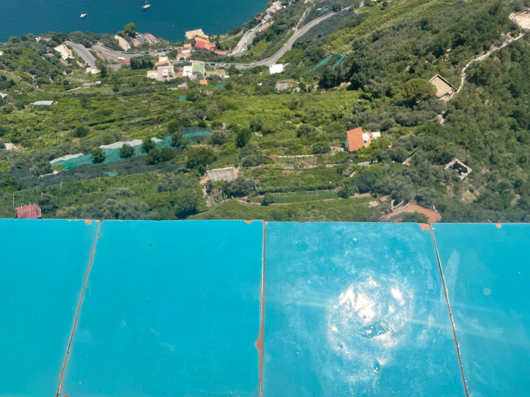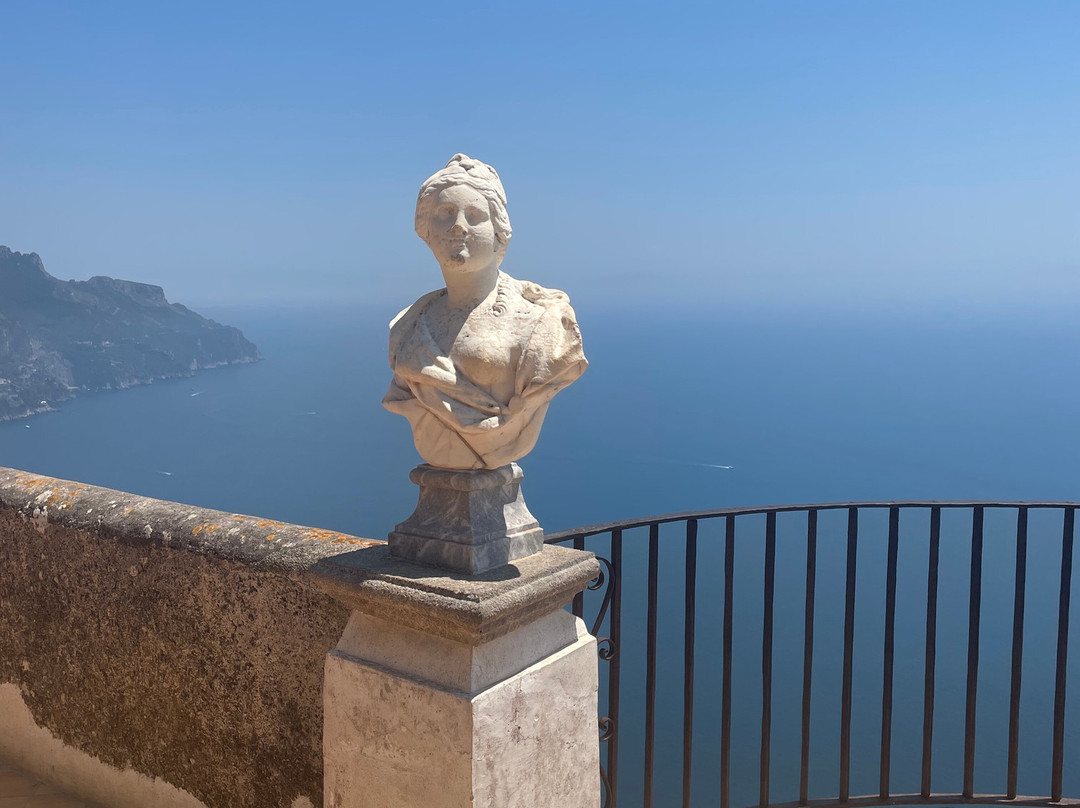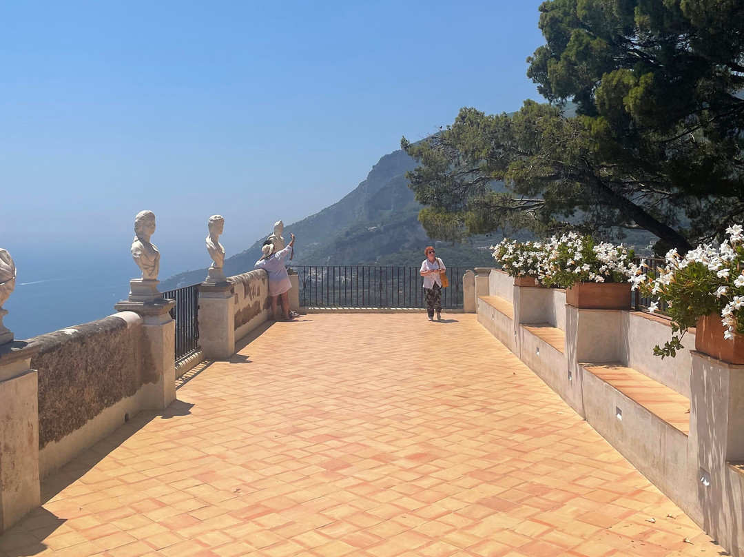 翻译:对于任何游览阿马尔菲海岸的人来说,这座别墅都是必看的。它位于拉维罗,您需要步行一段距离才能到达,所以请确保您有足够的水和一双好鞋。无边露台上的景色值得您迈出的每一步。别墅周围的花园也同样令人惊叹,中间有几座雕塑。门票很便宜,只需 7 欧元。您甚至可以住在别墅里,因为部分别墅已改建成酒店,但费用非常昂贵。一定要去露台附近的咖啡馆 Lucille's Balcony。您可以在那里喝杯柠檬冰沙或意式冰淇淋,准备好眺望后面的小阳台。如果您有眩晕症,不建议前往,因为这种景色会让您惊慌失措。我放的图片不能反映它的真正魅力。计划花至少几个小时探索这片土地。