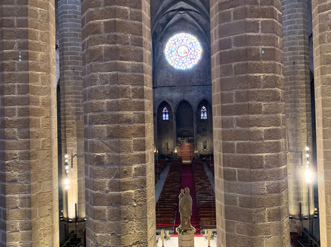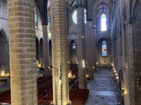 翻译:这座教堂的历史可以追溯到14世纪(1329年),被誉为加泰罗尼亚哥特式建筑的杰作,实至名归。