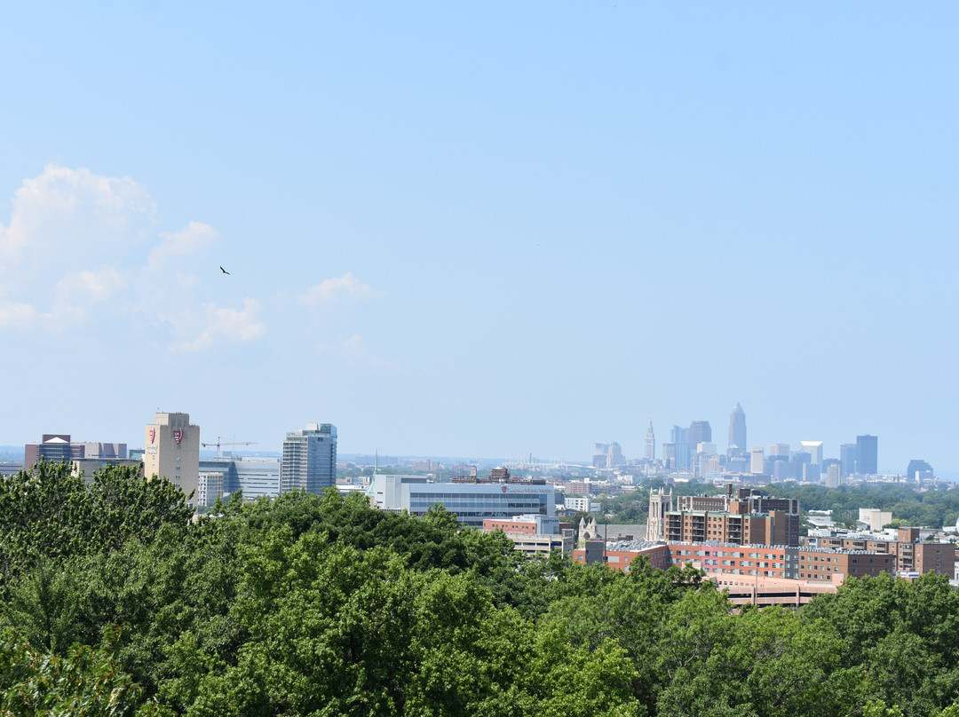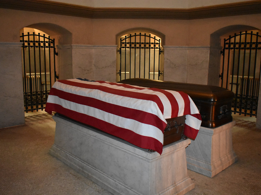 点评:After visiting the James A. Garfield National Historic Site in Nearby Mentor, I made the short drive down to Lakeview Cemetery to visit the James A. Garfield Memorial, which is the final resting place of President Garfield, his wife and the cremains of two of their children. The Garfield Memorial is one of the largest Presidential tomb. I think only the Tomb of President Ulysses S. Grant is Bigger. To say that the Garfield Memorial is impressive would be an understatement. The first thing you see when entering the memorial is the large marble statue of President Garfield that stand in the beautiful rotunda. The artwork in the rotunda is amazing. After spending some time in the rotunda, I made my way down the narrow spiral stairs to the memorial tomb. Resting her are the coffins containing the mortal remains of President Garfield and His wife Lucretia. One of the volunteers here informed visitors that these are the original coffins, and they have never been buried. President Garfield’s casket is covered with the American Flag. Visitors can walk completely around the circular tomb to see the caskets at every angle. My final stop was on the monument’s observation deck. Once again you access the observation deck by climbing a set of narrow spiral stairs from the center rotunda. Once on top of the memorial visitors are afforded a grand view of the Cleveland Skyline and Lake Erie. This is an amazing monument in every sense and the volunteers are very helpful and informative. I would encourage anyone in the Cleveland area to make time to visit this impressive memorial.